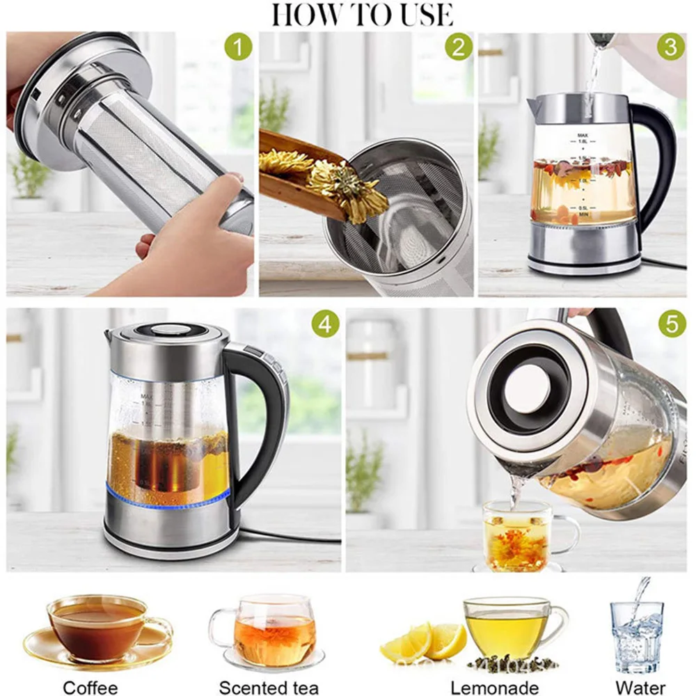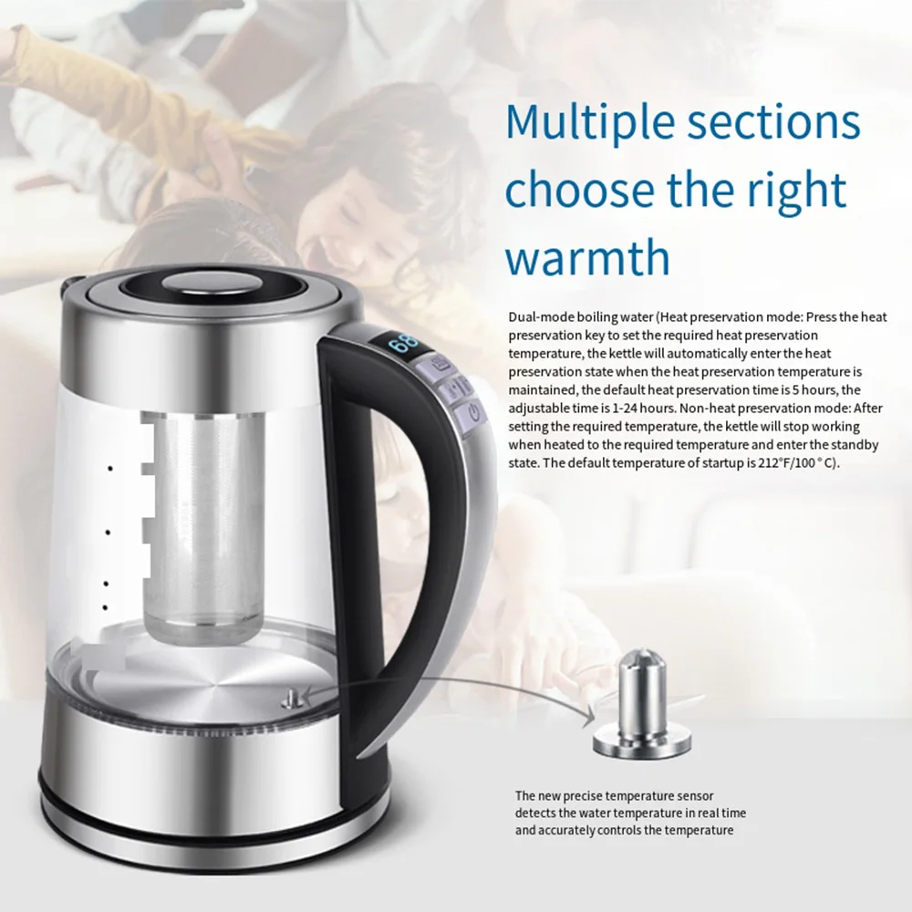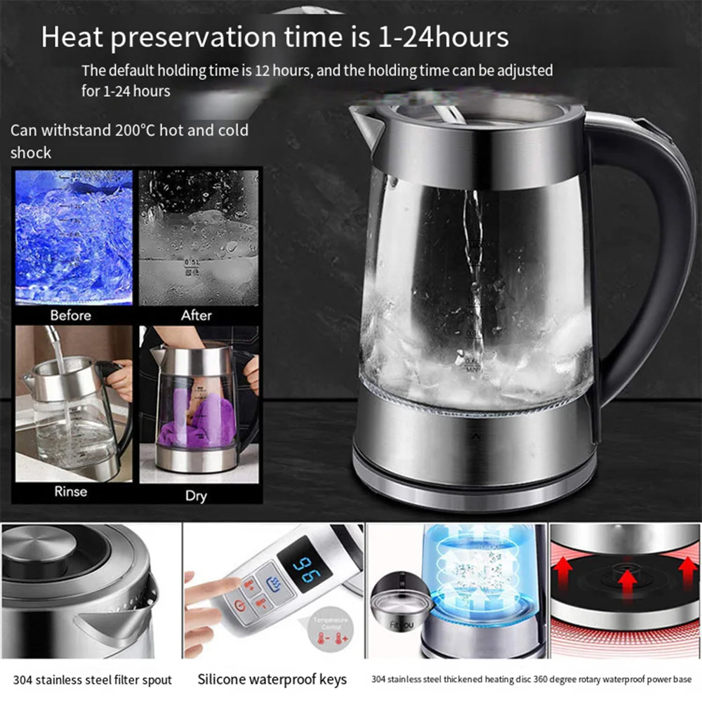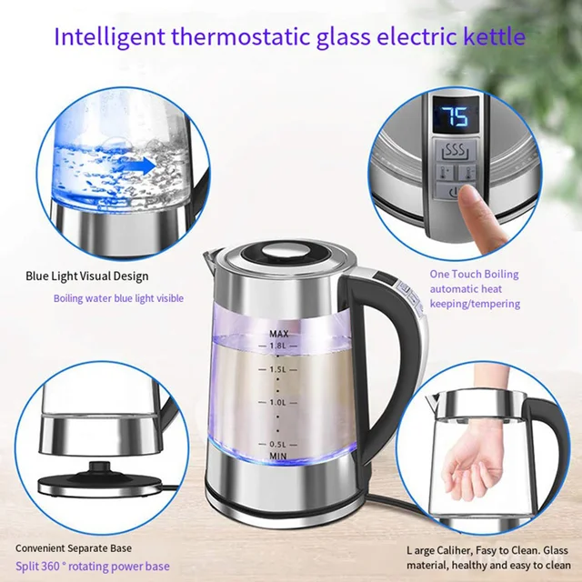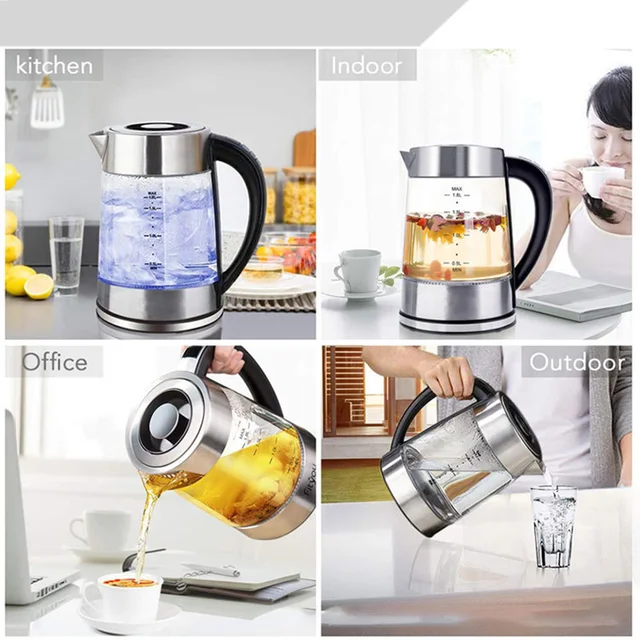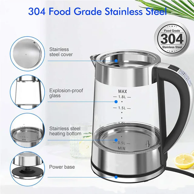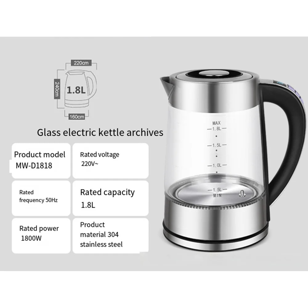 1.8L Portable Electric Kettle Teapot 1800W Glass Stainless Steel Water Boiler Fast Heating Tea Pot Home Appliance 220V 전기포트 주전자