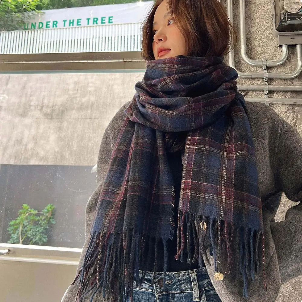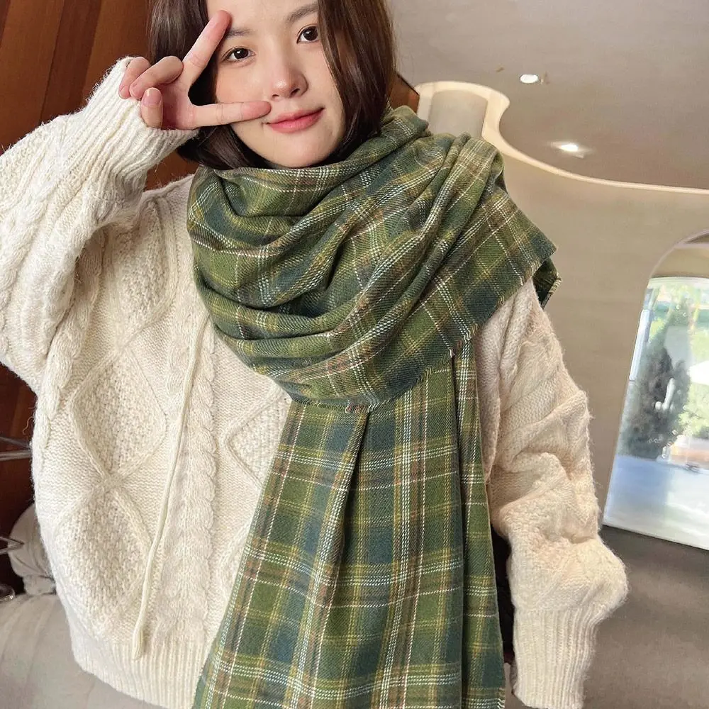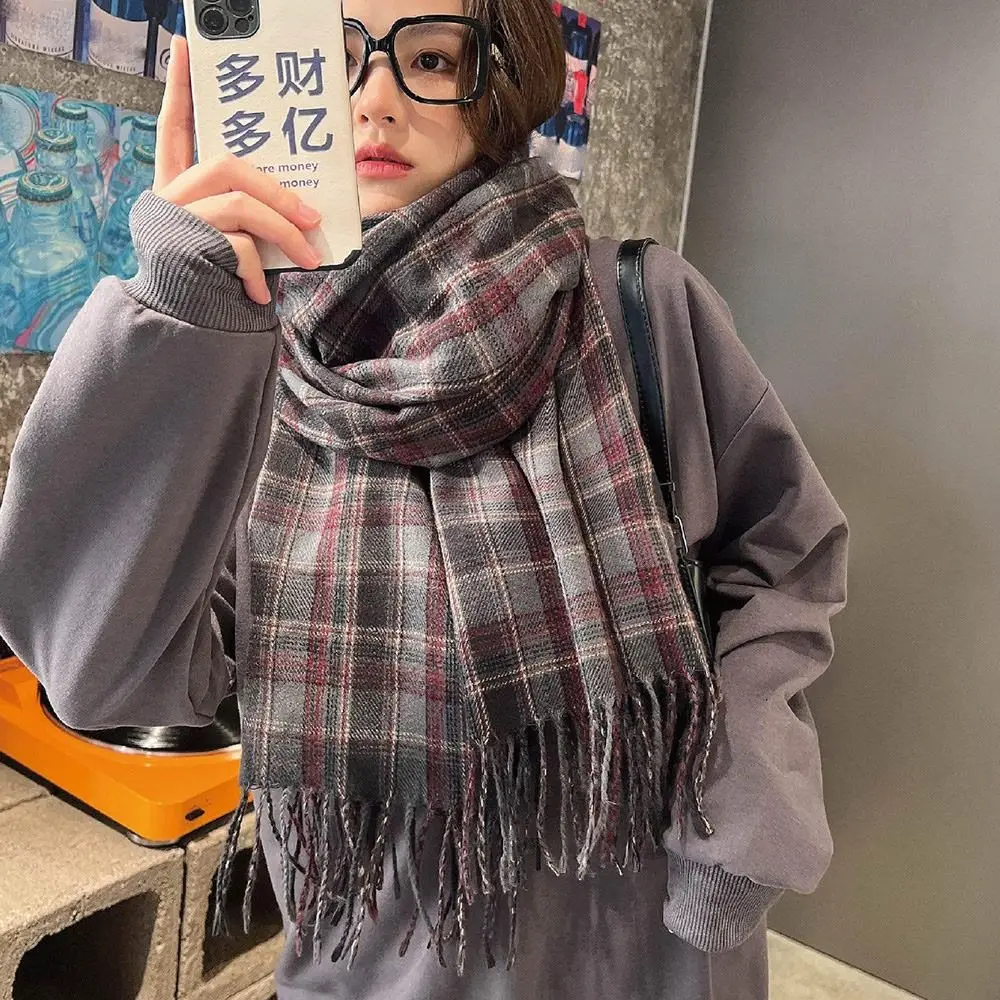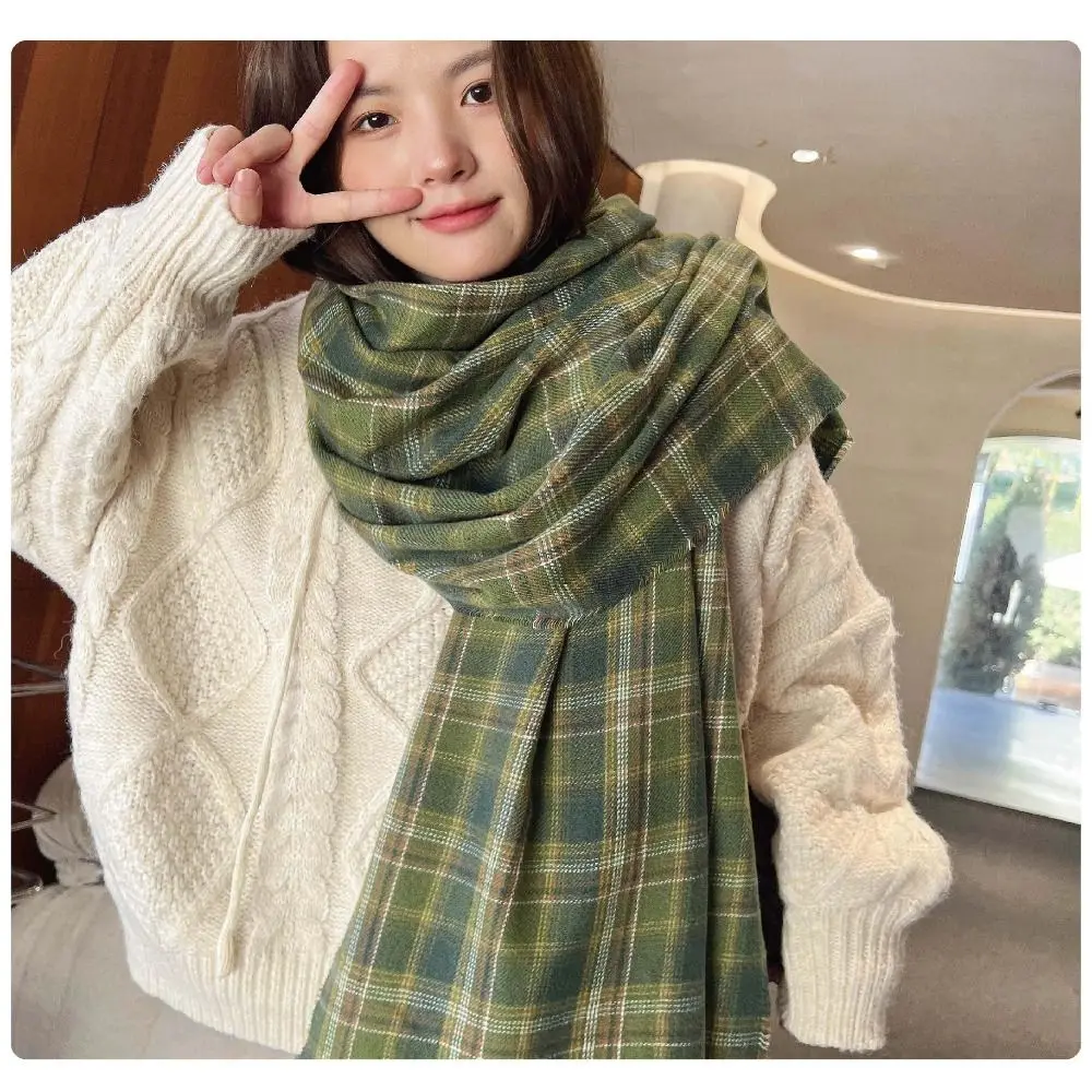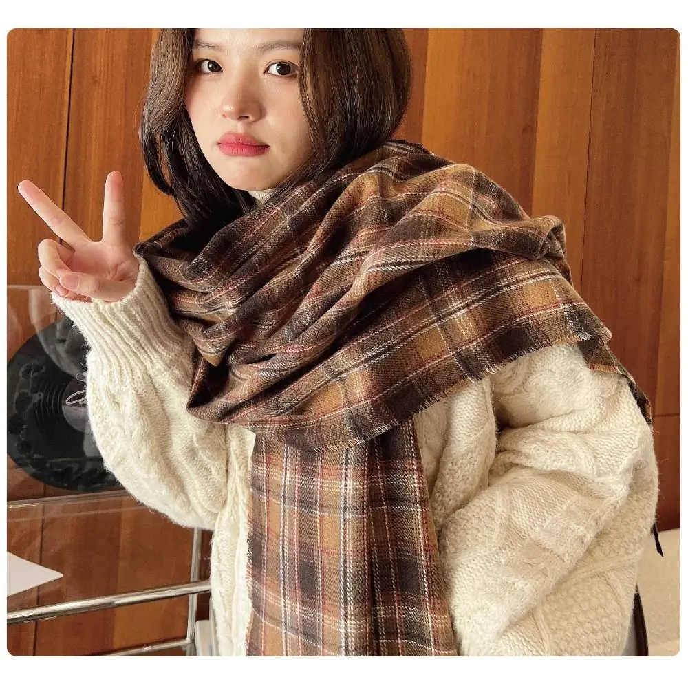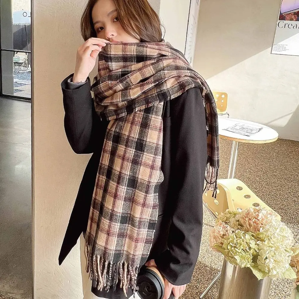 180*68cm Imitation Cashmere Scarf Vintage Plaid Printed Comfortable Neck Warmer Wrap Preppy Style Women's Wraps Shawl
