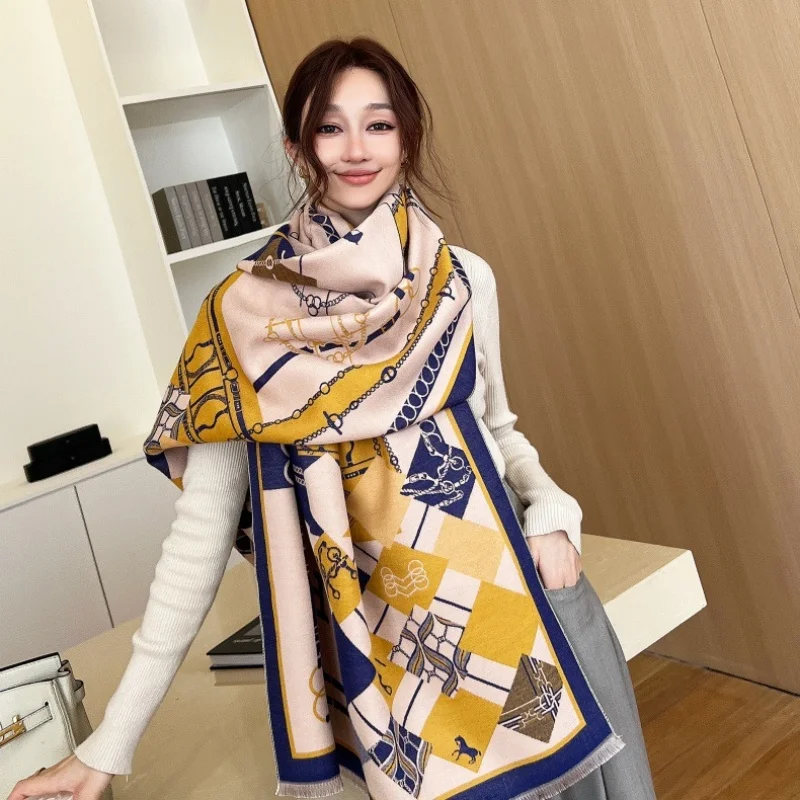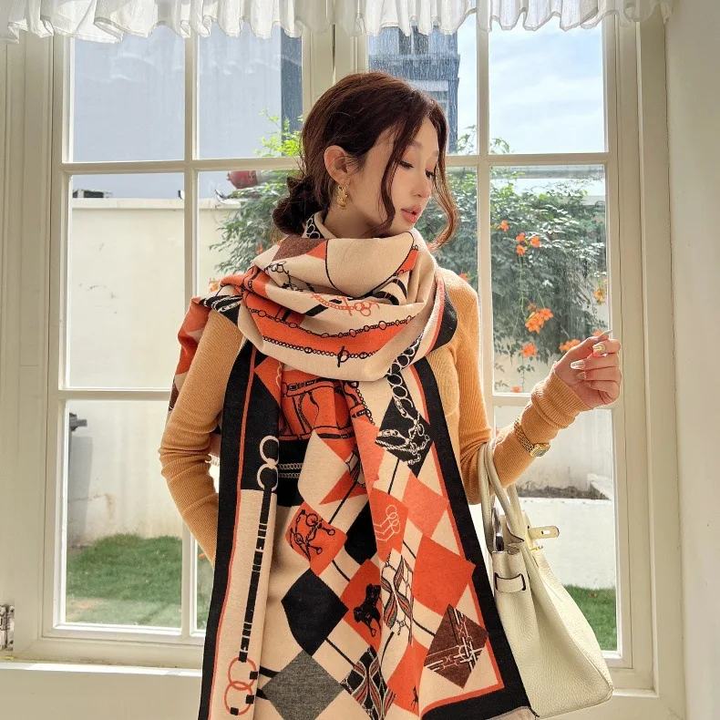 Trendy Long Fur Scarf Women's Winter Faionable Chic adual Pattern Warm Polyester Fiber Rectangle ape Personalized Sle