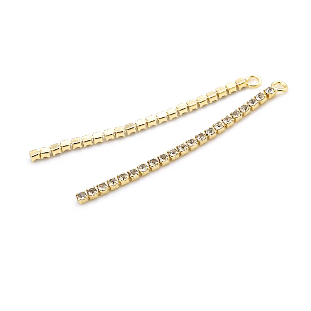 Material:Brass Color:18K Gold Color Size:Full Length 60MM Rhinestone Width 2MM Hole 2MM |