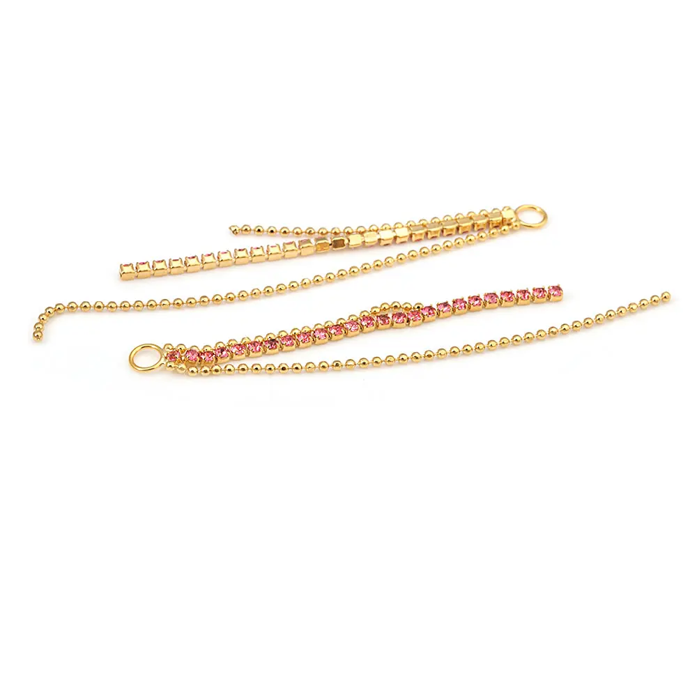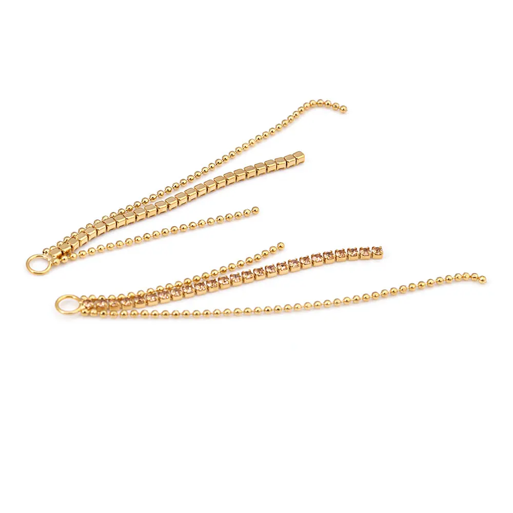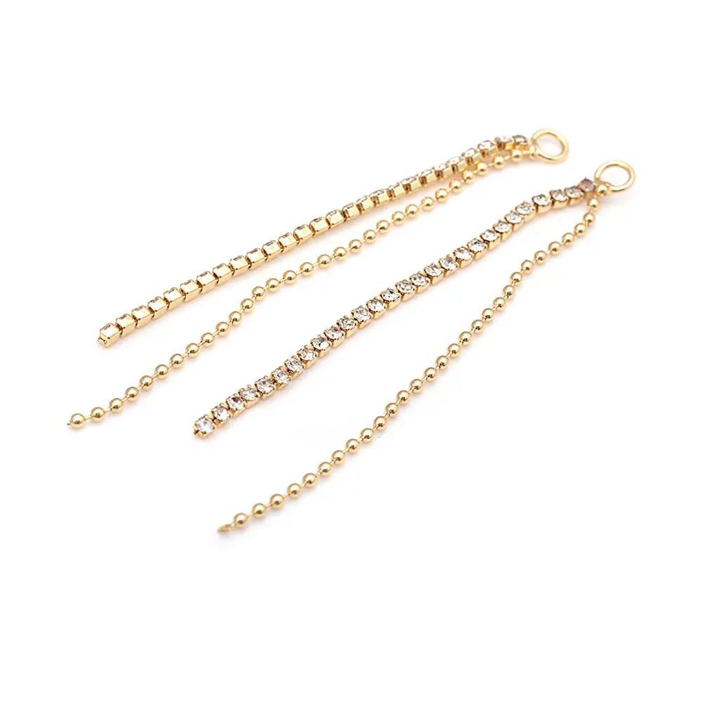 Material:Brass Color:18K Gold Color Size:Full Length 65MM Rhinestone Width 1.5MM Bead 1.5MM Hole 3MM |