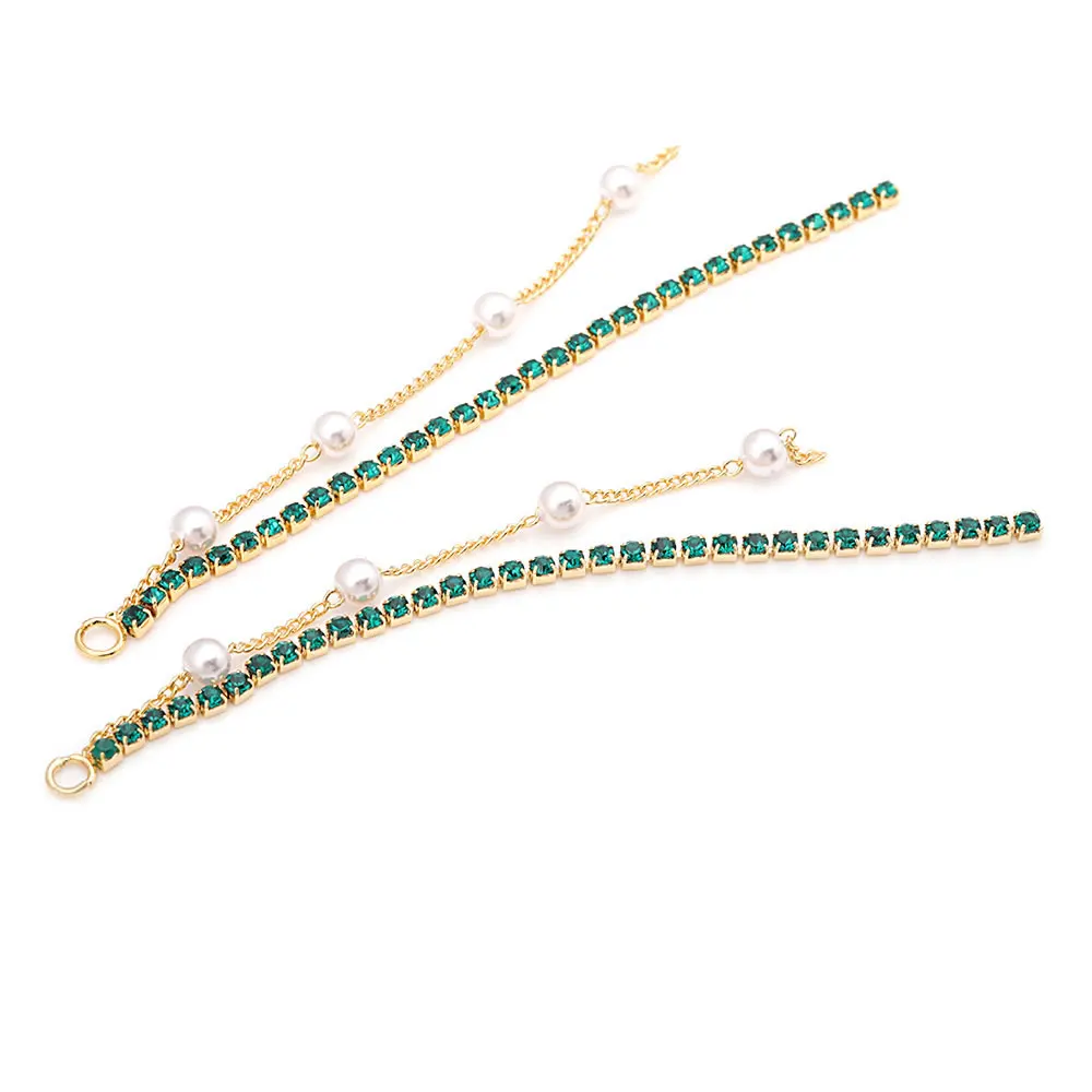 Material:Brass and Zircon Color:18K Gold Color Size:Full Length 80MM Rhinestone Wide 2MM Bead 4MM Hole 3MM |