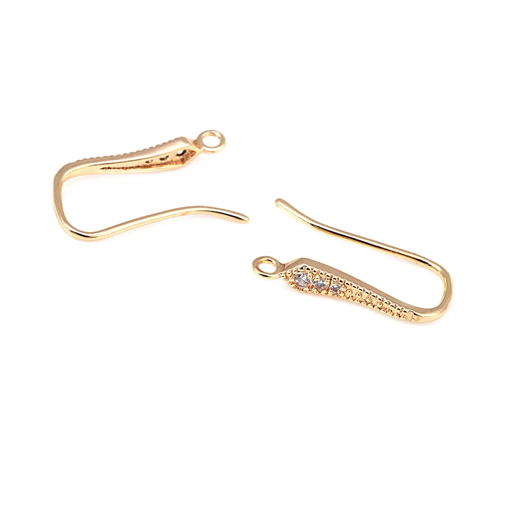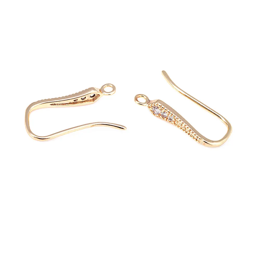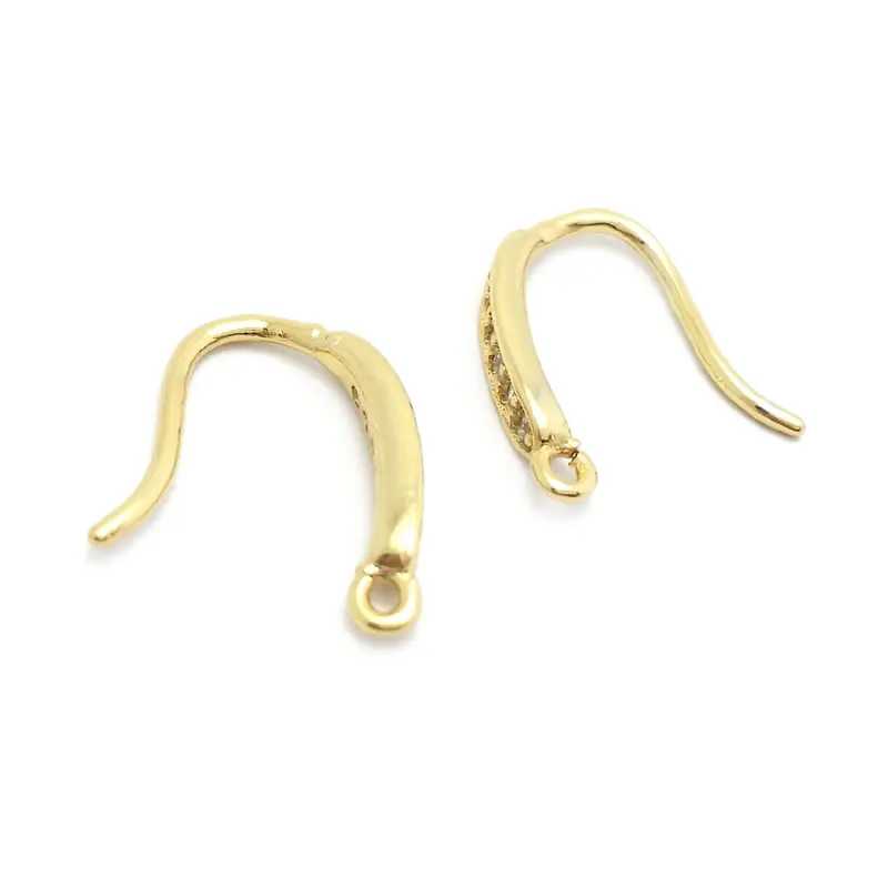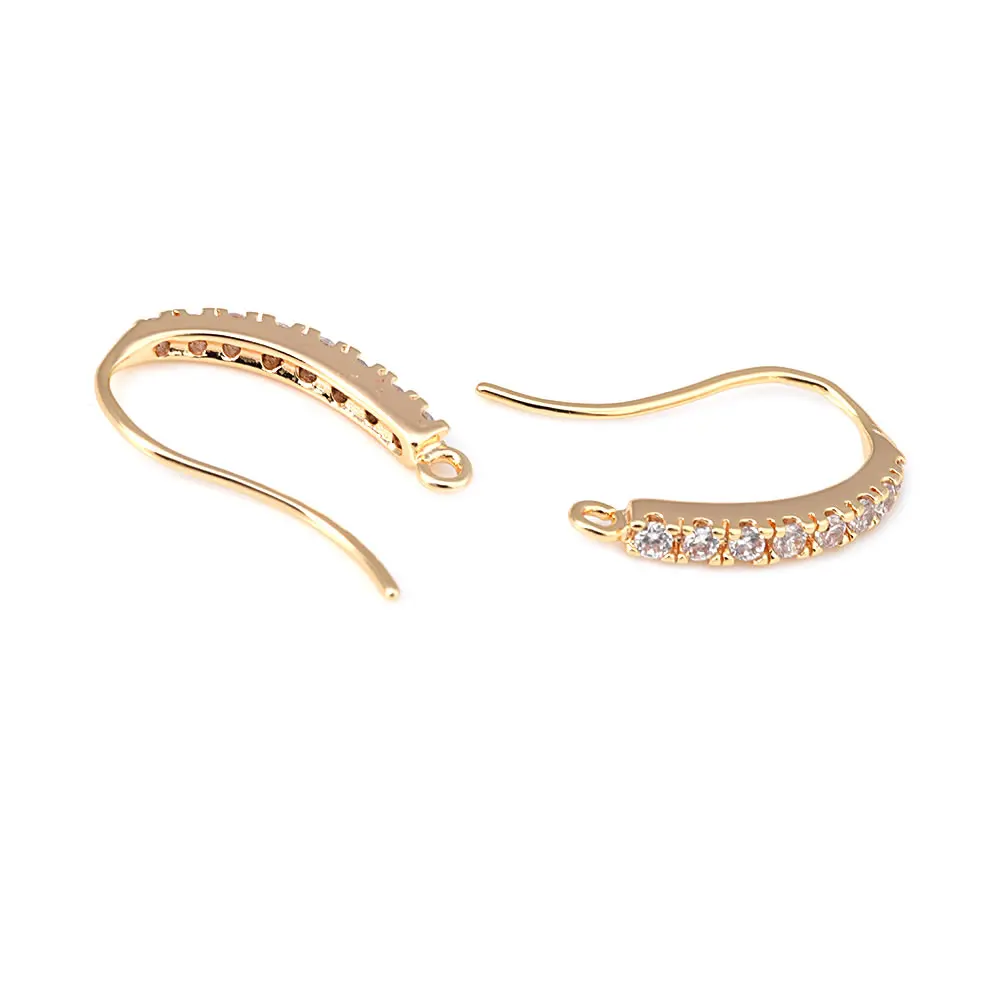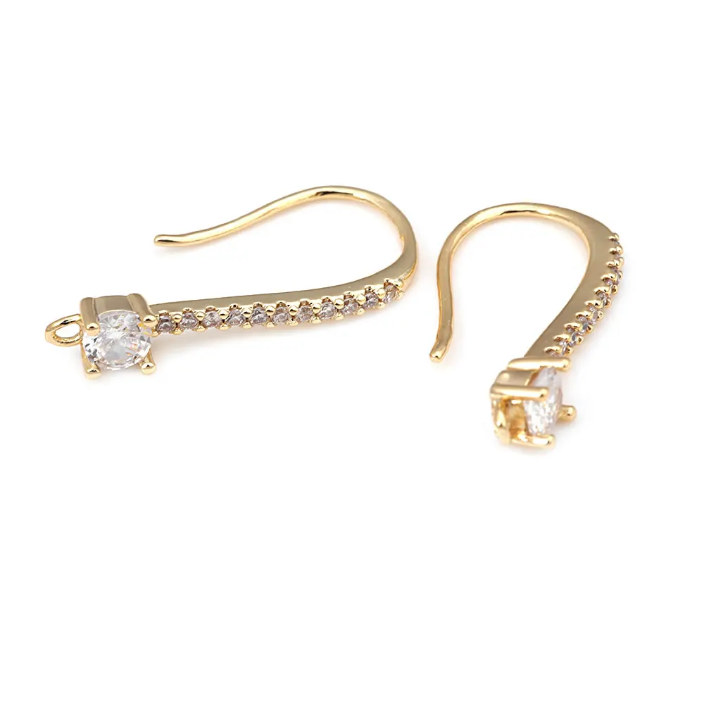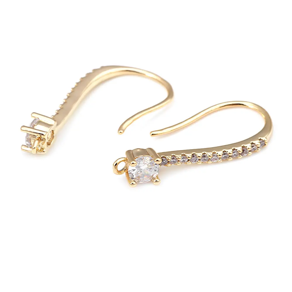 18K Gold Plated Round Earring Clasps Accessories,Brass With Zircon Earring Hooks Clasps Earwires,DIY Women Earring Accessories