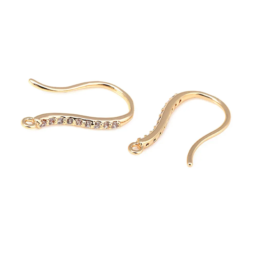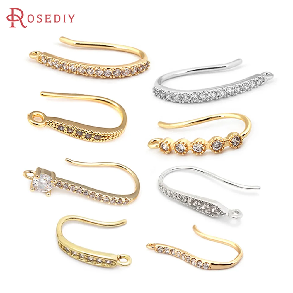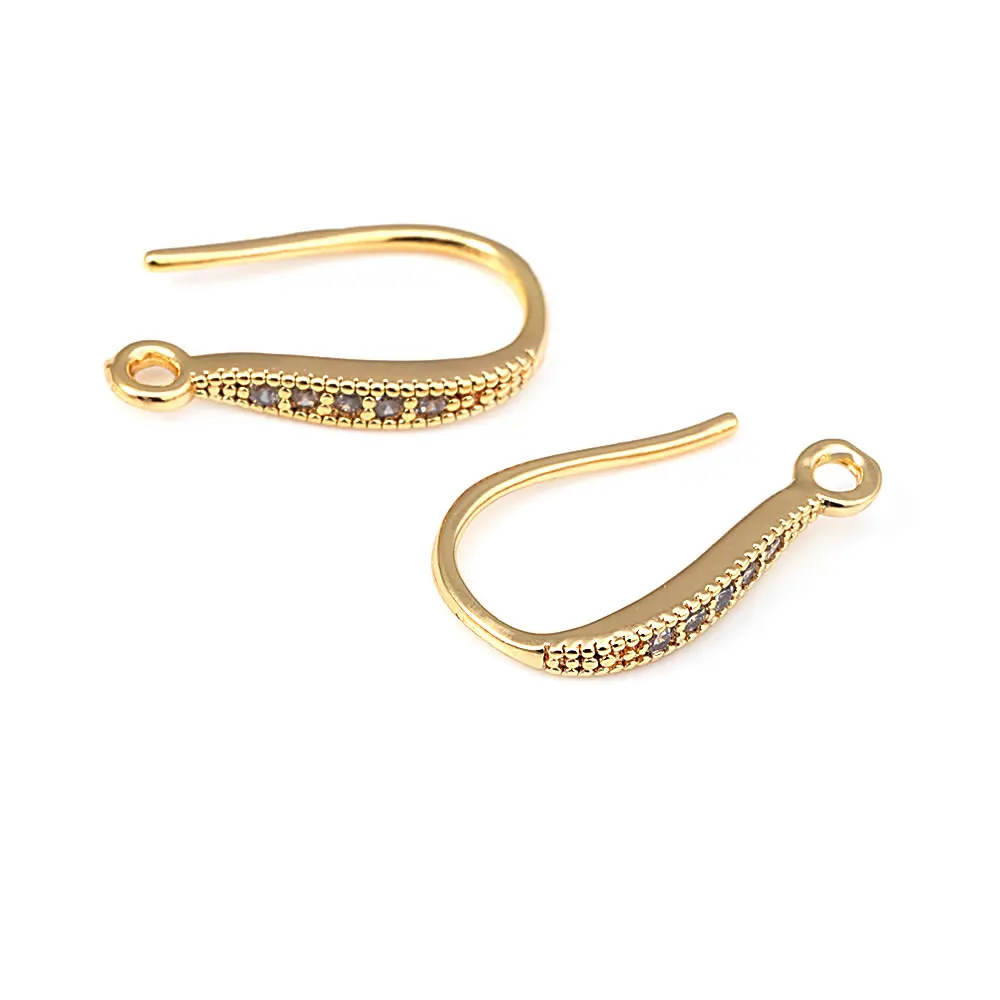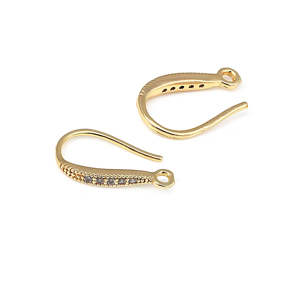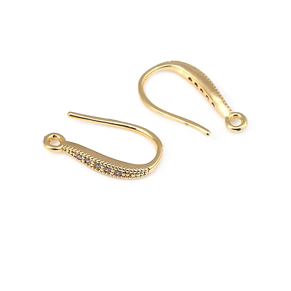 18K Gold Plated Round Earring Clasps Accessories,Brass With Zircon Earring Hooks Clasps Earwires,DIY Women Earring Accessories