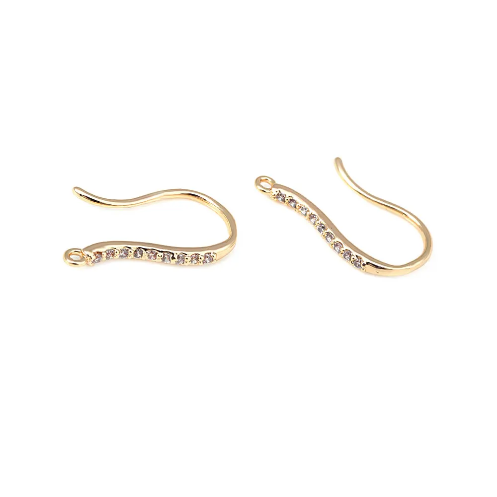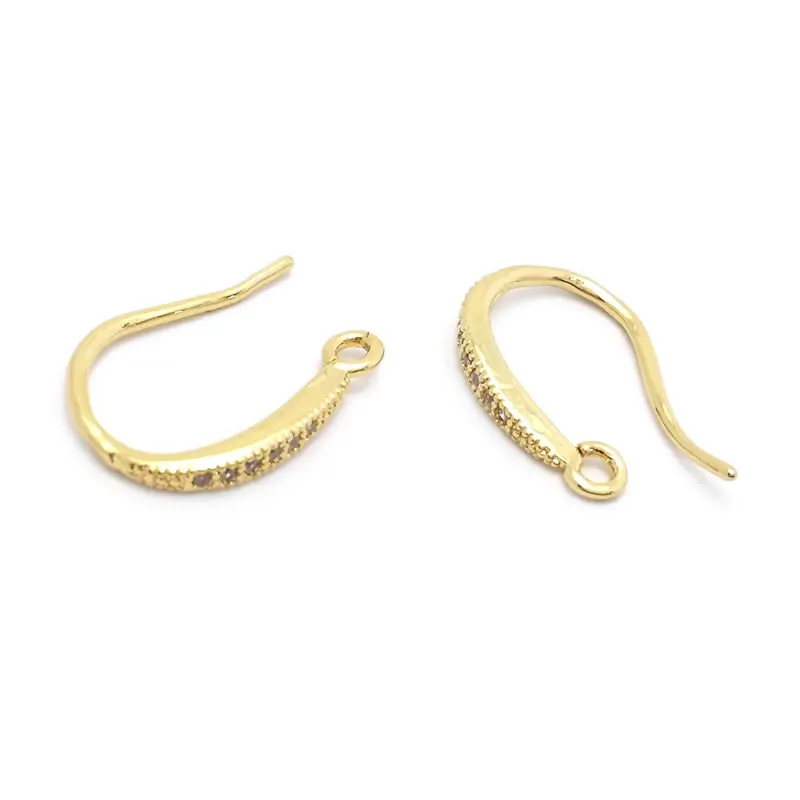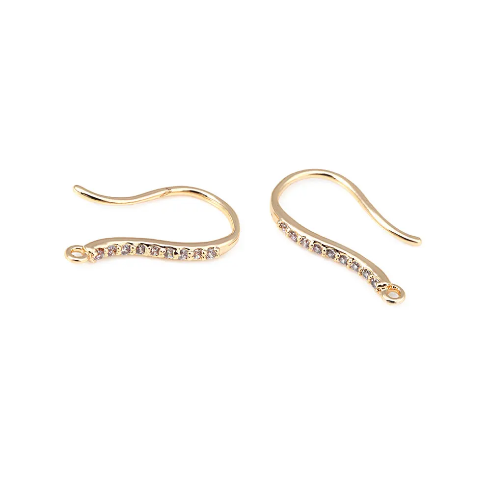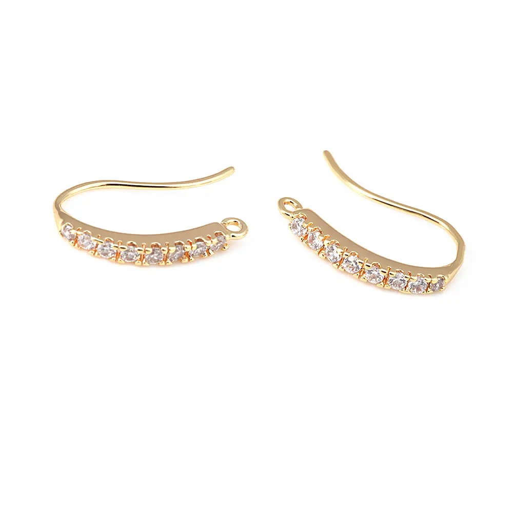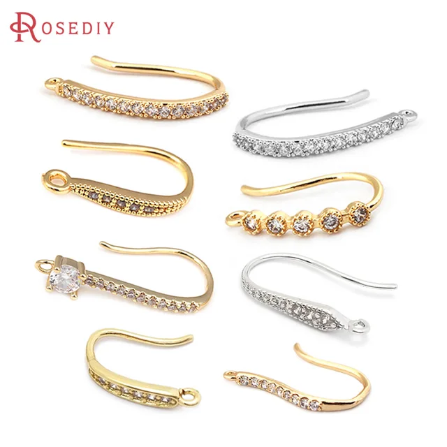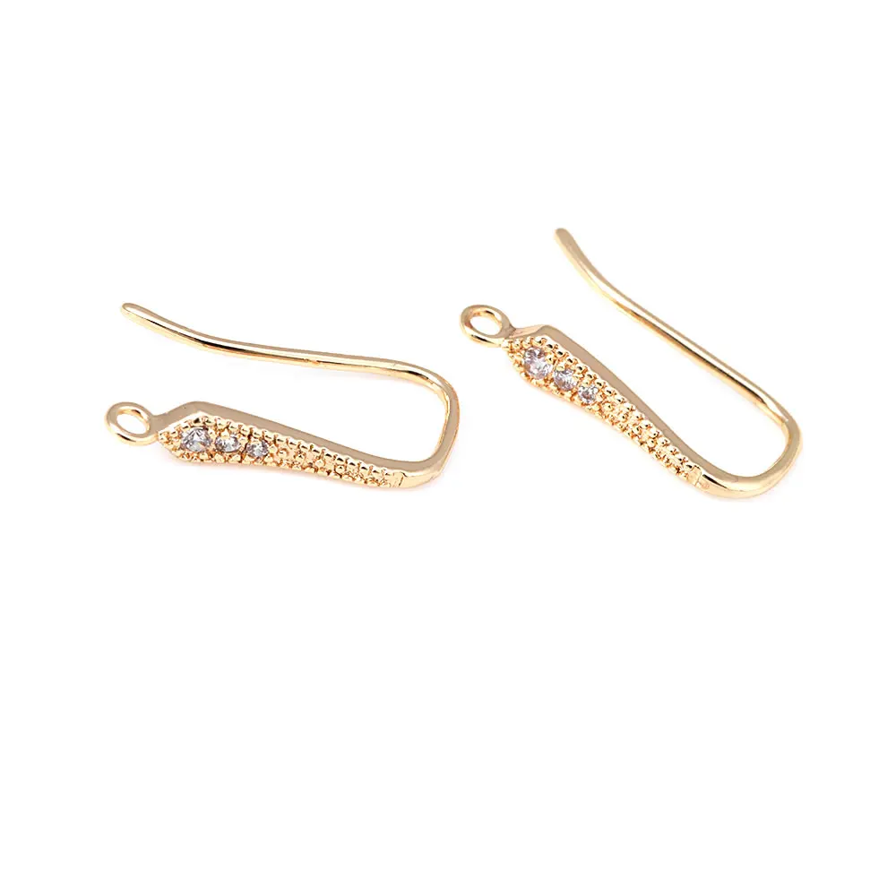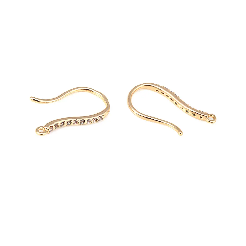 18K Gold Plated Round Earring Clasps Accessories,Brass With Zircon Earring Hooks Clasps Earwires,DIY Women Earring Accessories