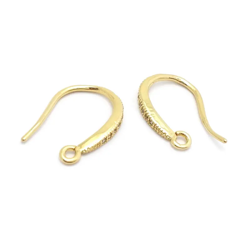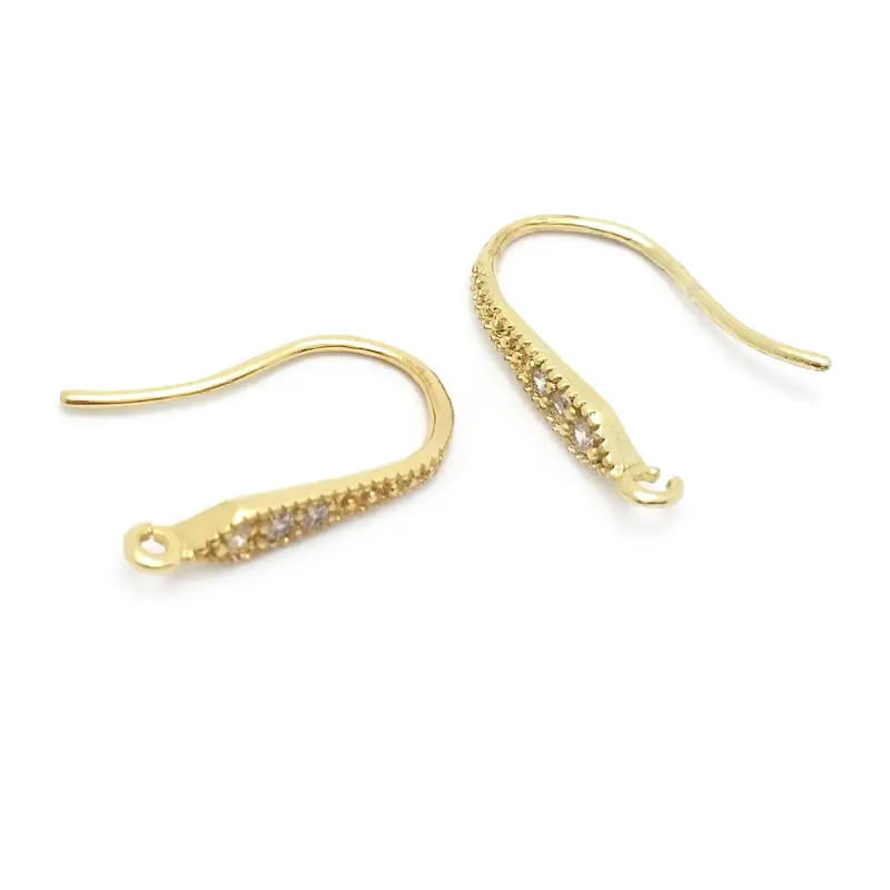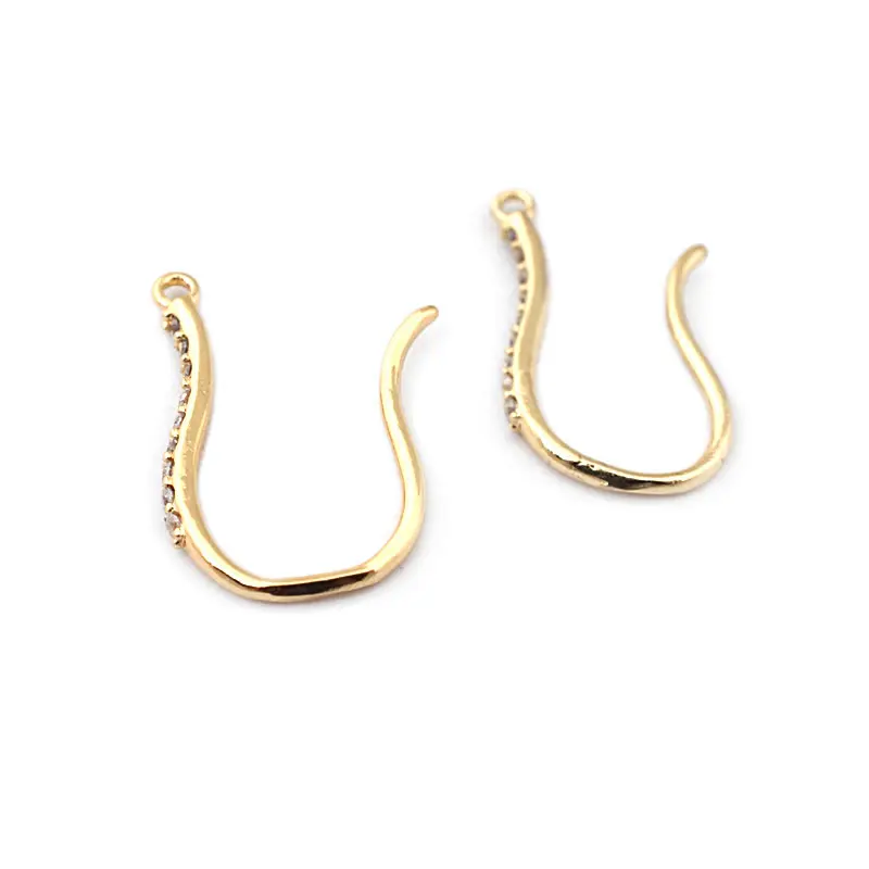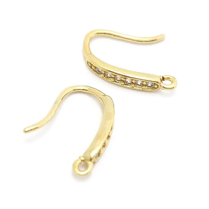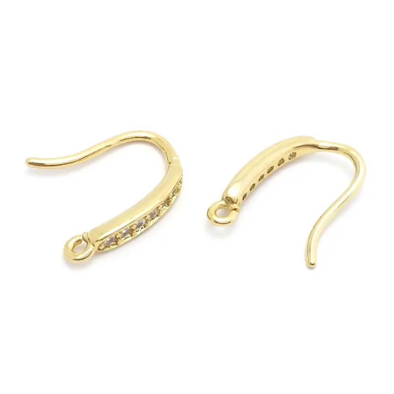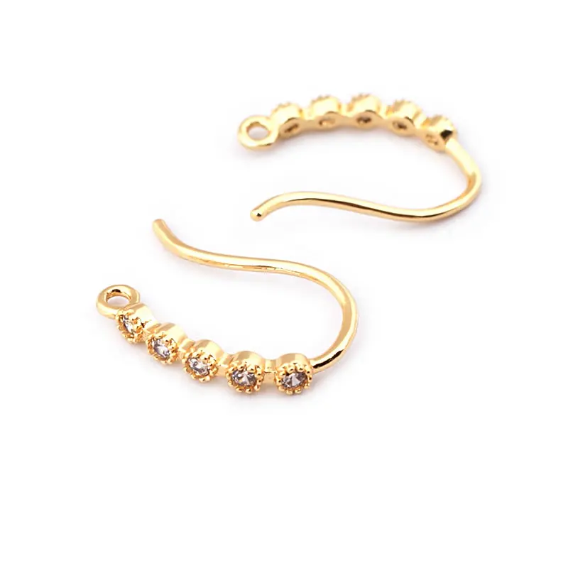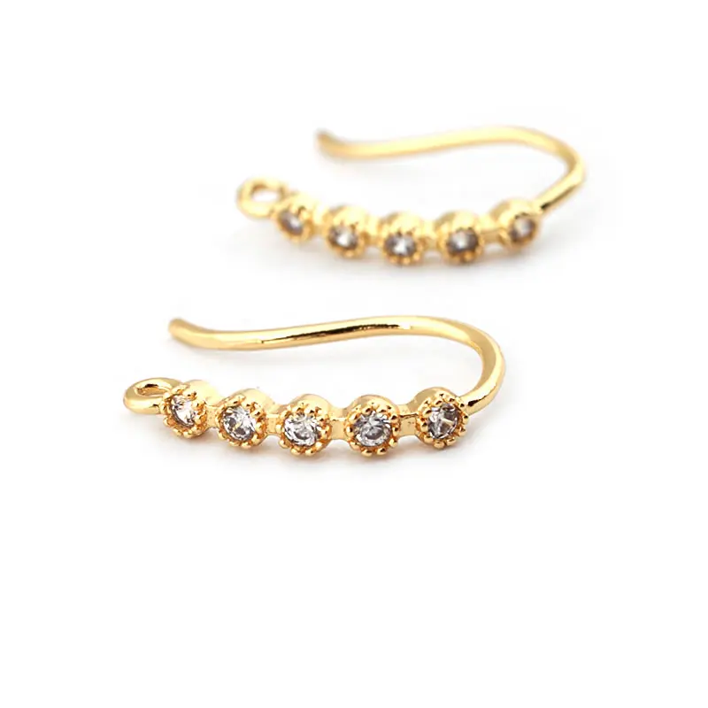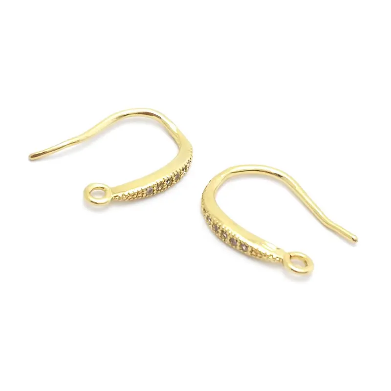 18K Gold Plated Round Earring Clasps Accessories,Brass With Zircon Earring Hooks Clasps Earwires,DIY Women Earring Accessories