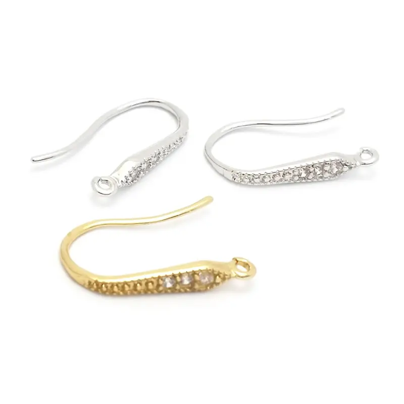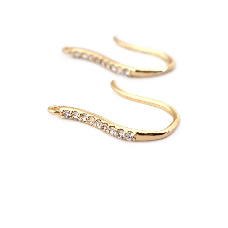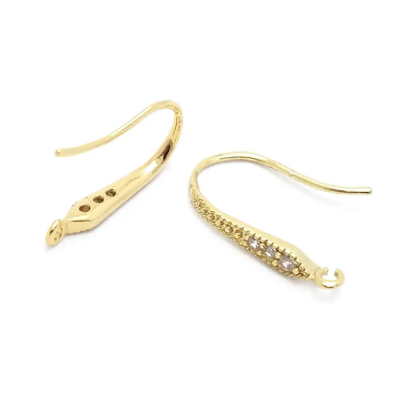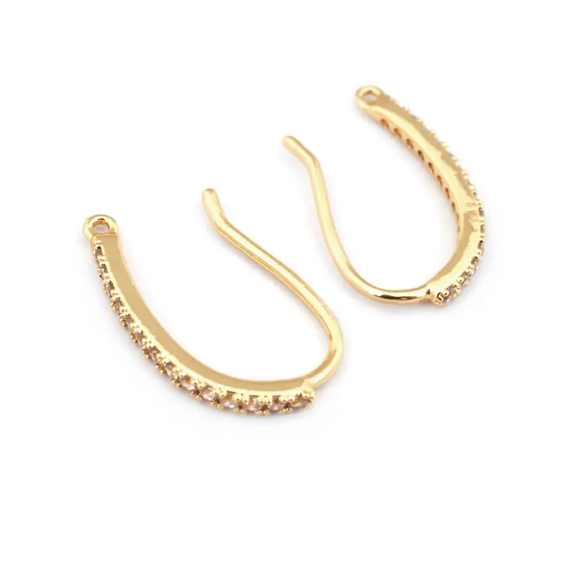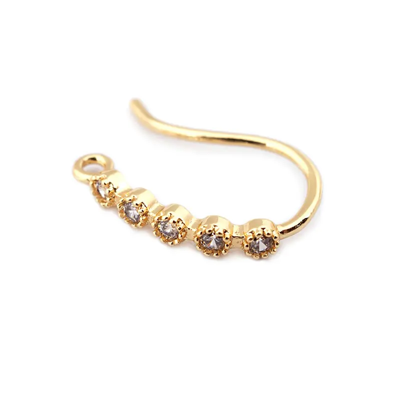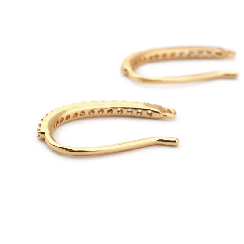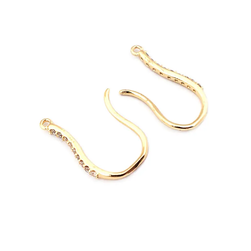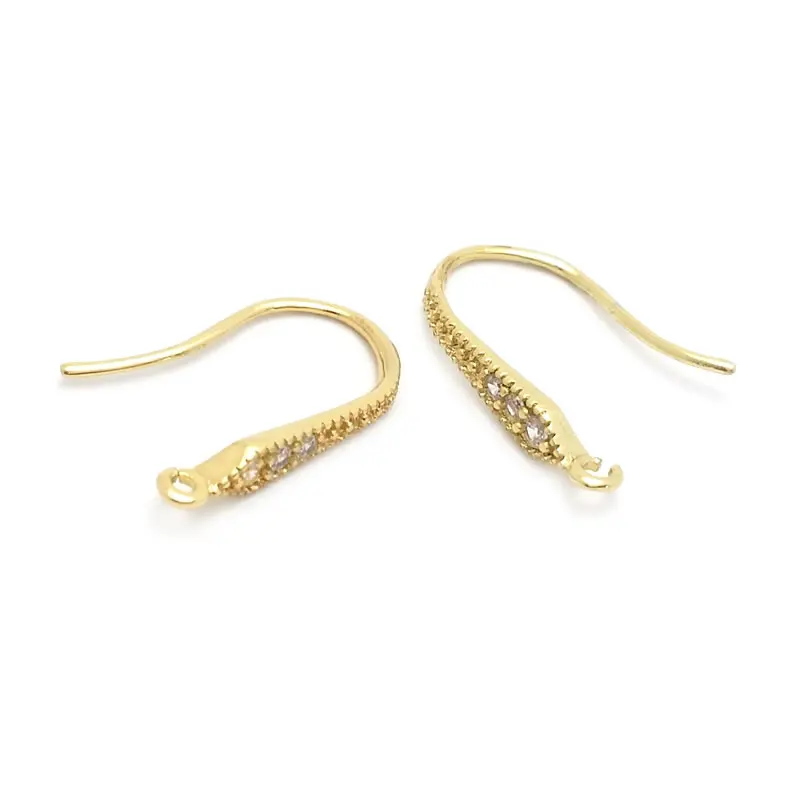 18K Gold Plated Round Earring Clasps Accessories,Brass With Zircon Earring Hooks Clasps Earwires,DIY Women Earring Accessories