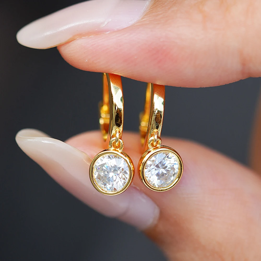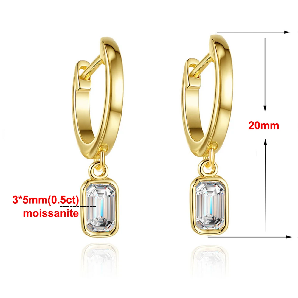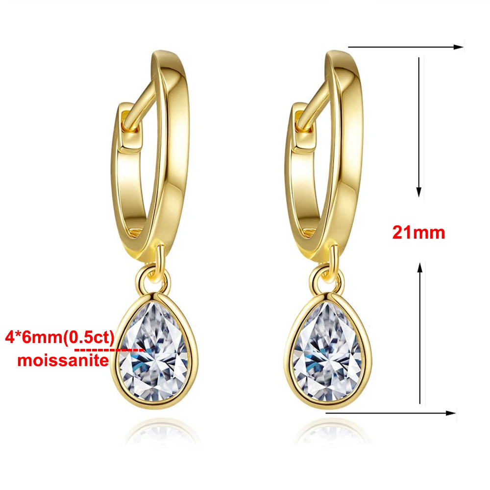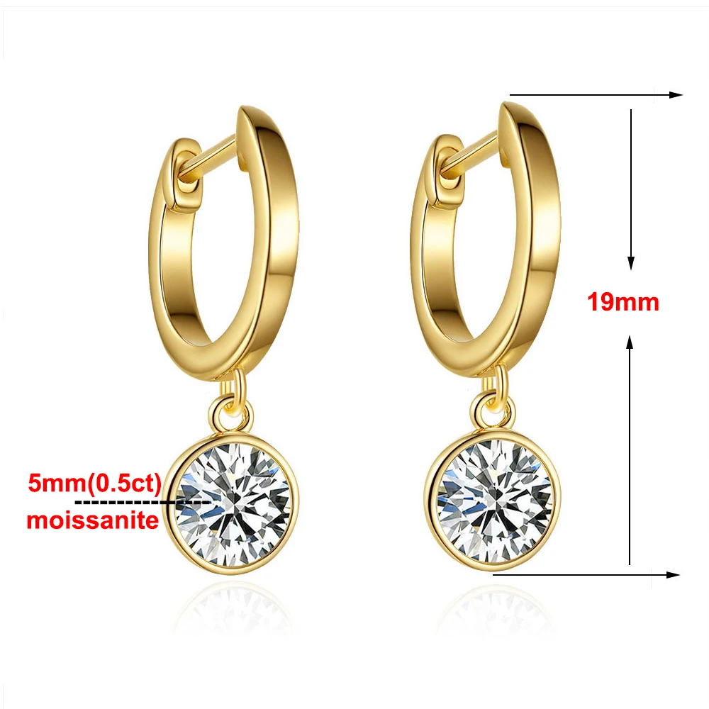 18K Gold Plated 0.5ct Moissanite Drop Earrings for Women Sparkling Lab Diamond Certified 925 Sterling Silver Daily Wear Earrings