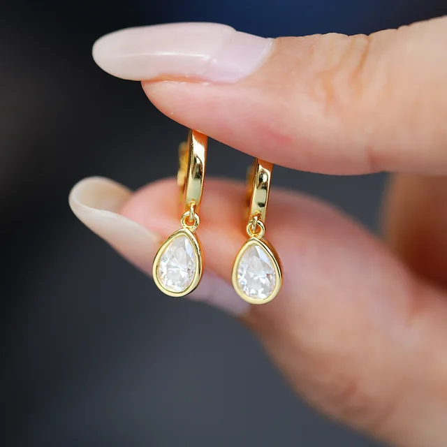 18K Gold Plated 0.5ct Moissanite Drop Earrings for Women Sparkling Lab Diamond Certified 925 Sterling Silver Daily Wear Earrings