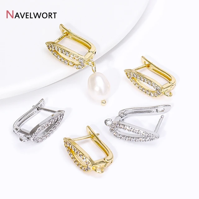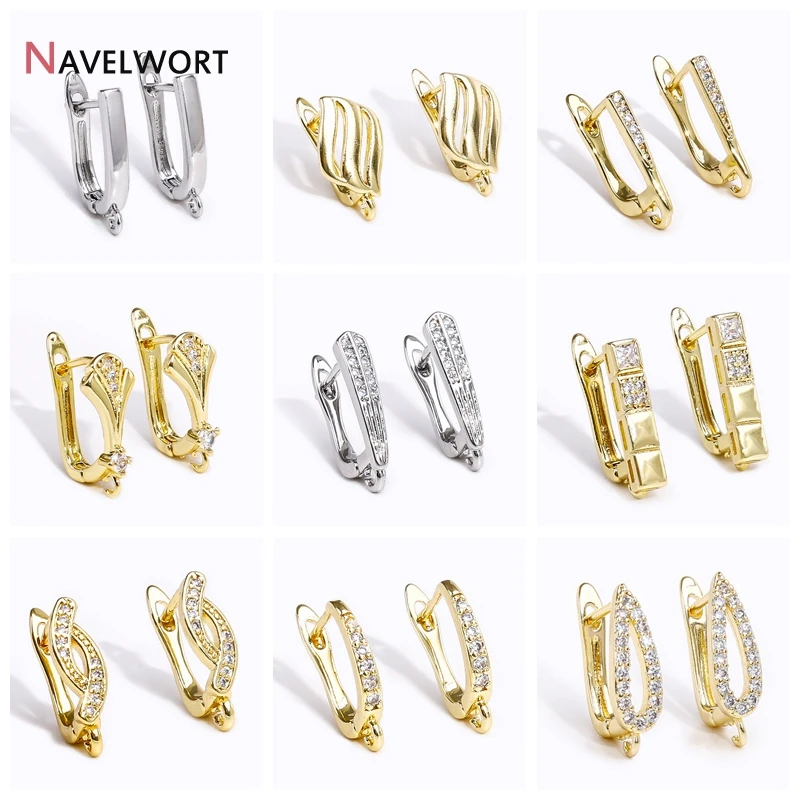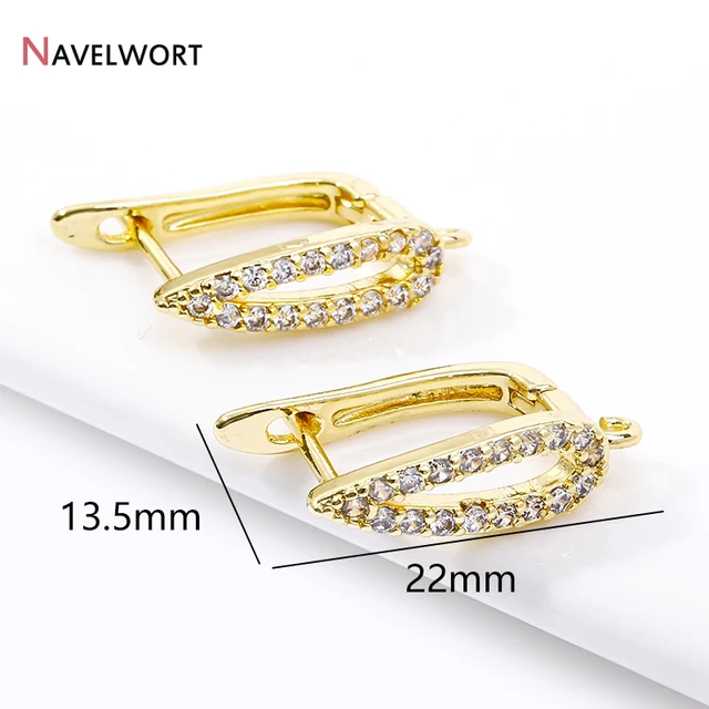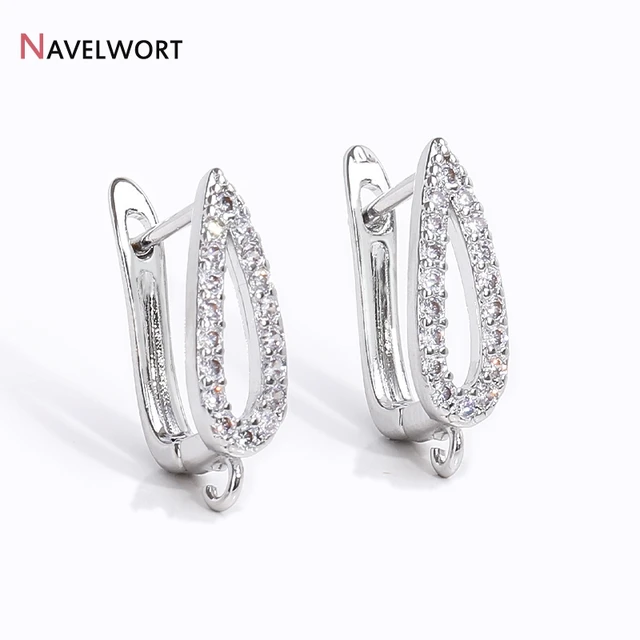 18K Gold Plated Brass Droplet Earring Hooks,Inlaid Zircon Teardrop Earwires Earring Fixtures For Earring