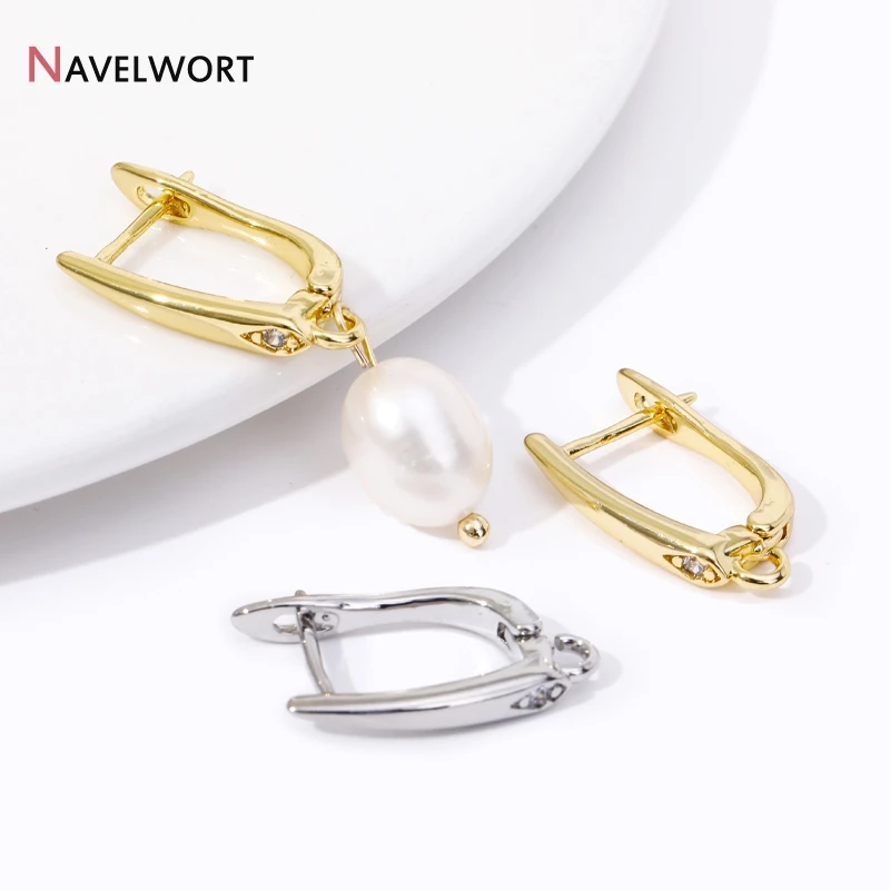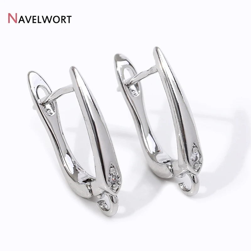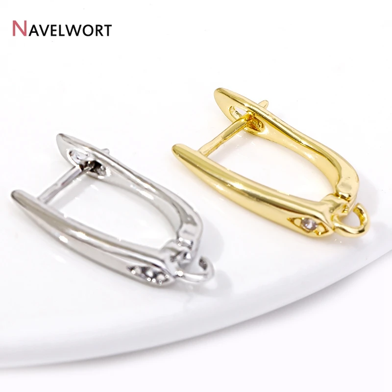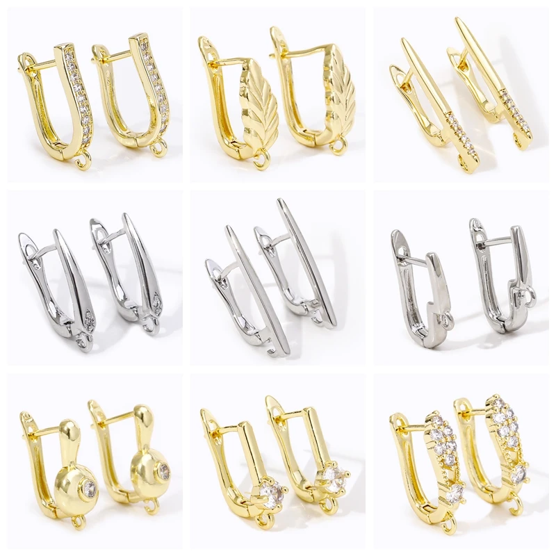 18K Gold Plated Brass Metal Earwires Basic Fasteners,Earring Fixtures,Inlaid Zircon Earring Hooks,Earring