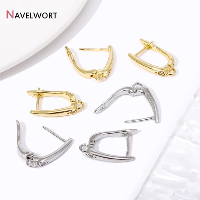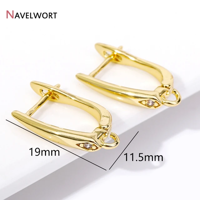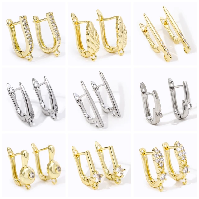 18K Gold Plated Brass Metal Earwires Basic Fasteners,Earring Fixtures,Inlaid Zircon Earring Hooks,Earring Making Supplies