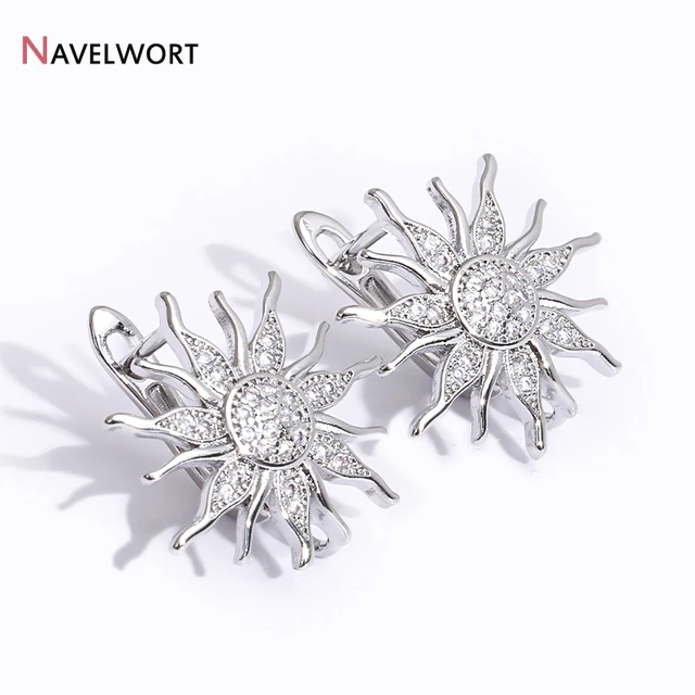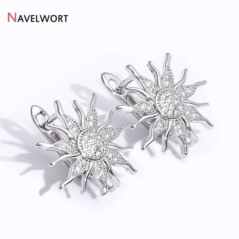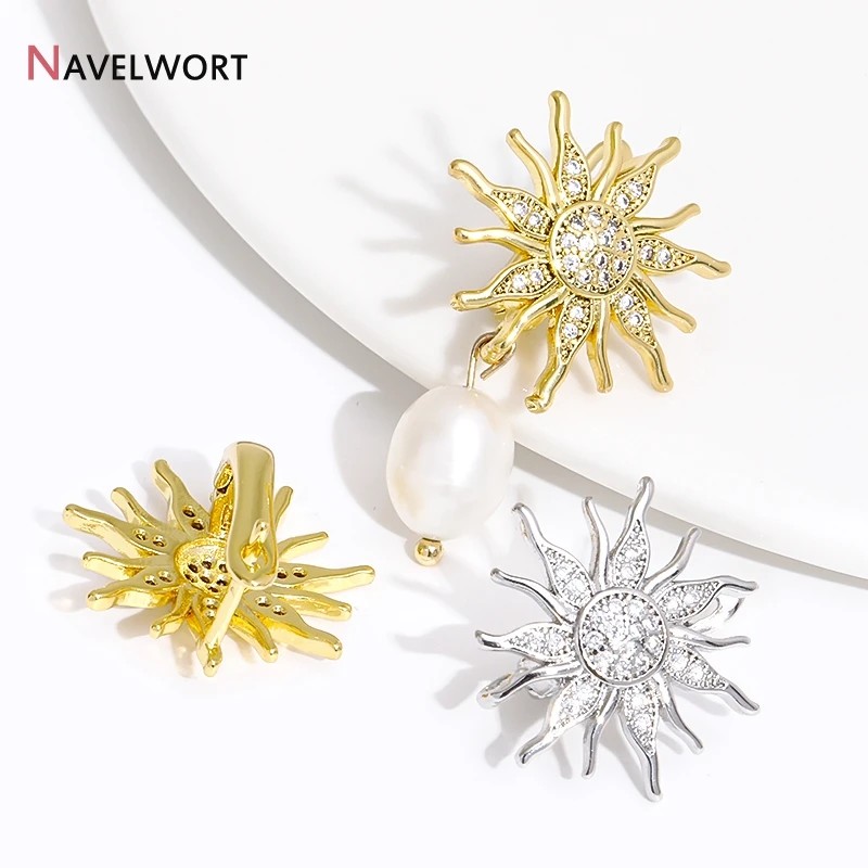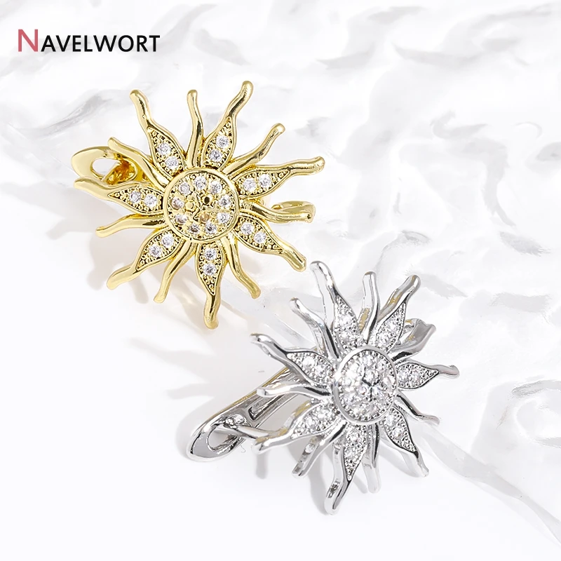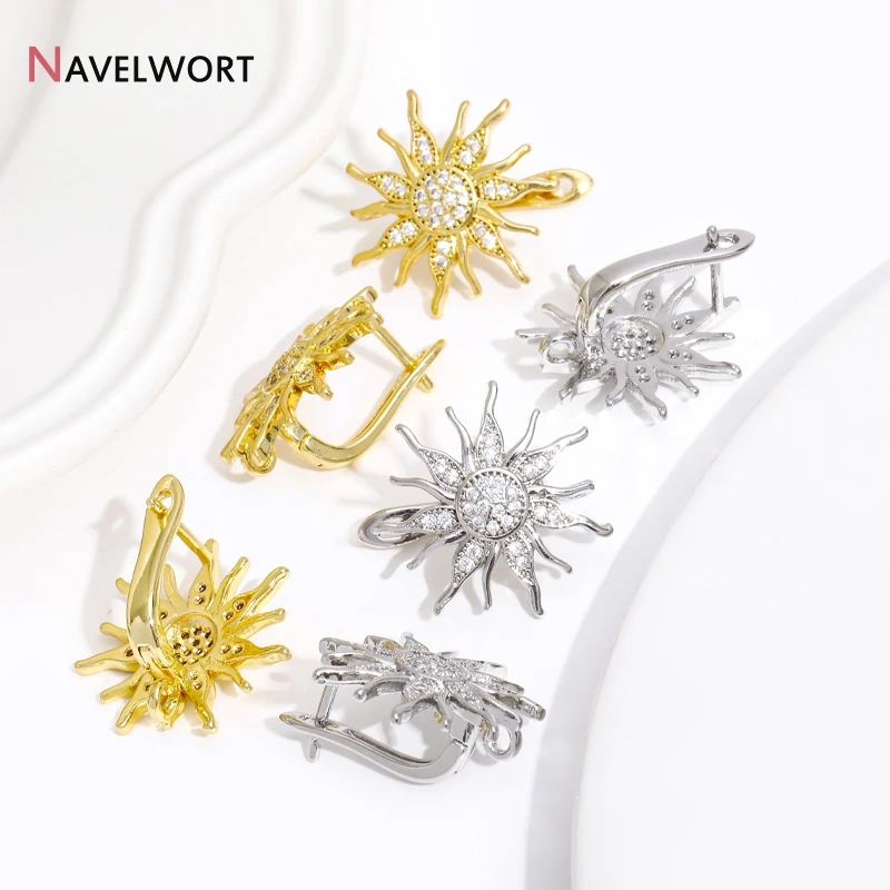 18K Gold Plated Brass Shvenzy Earwires,Sun Flower Earring Hooks,Inlaid Zircon Earring Fixtures,Earrings For Luxury Earrings