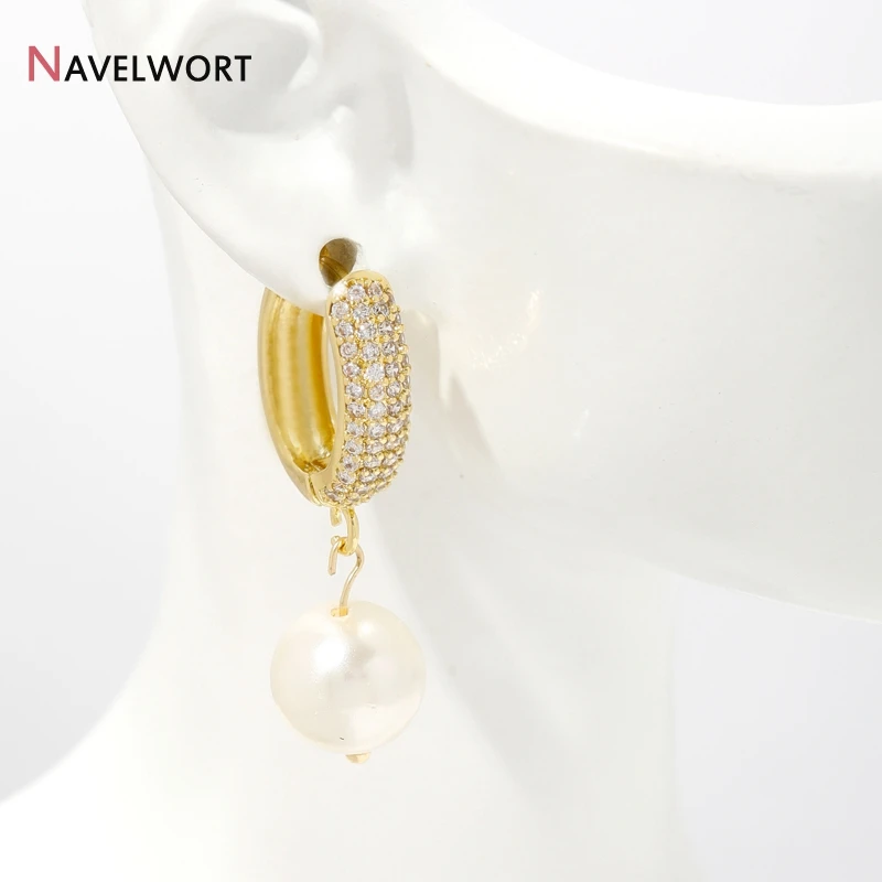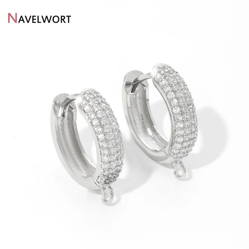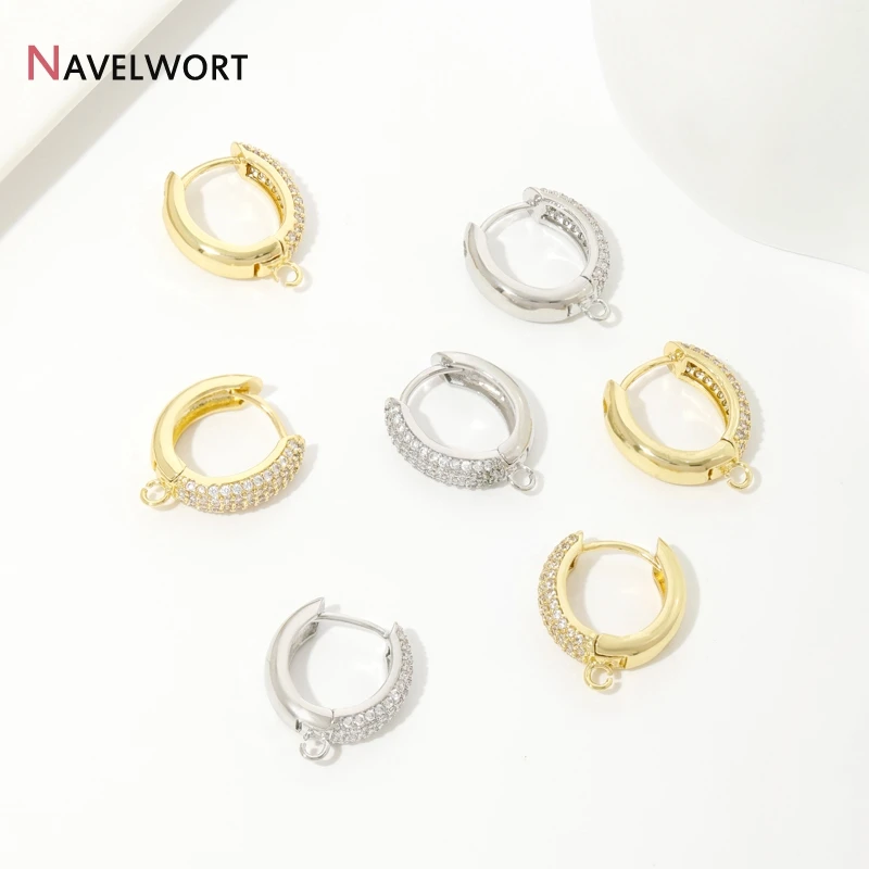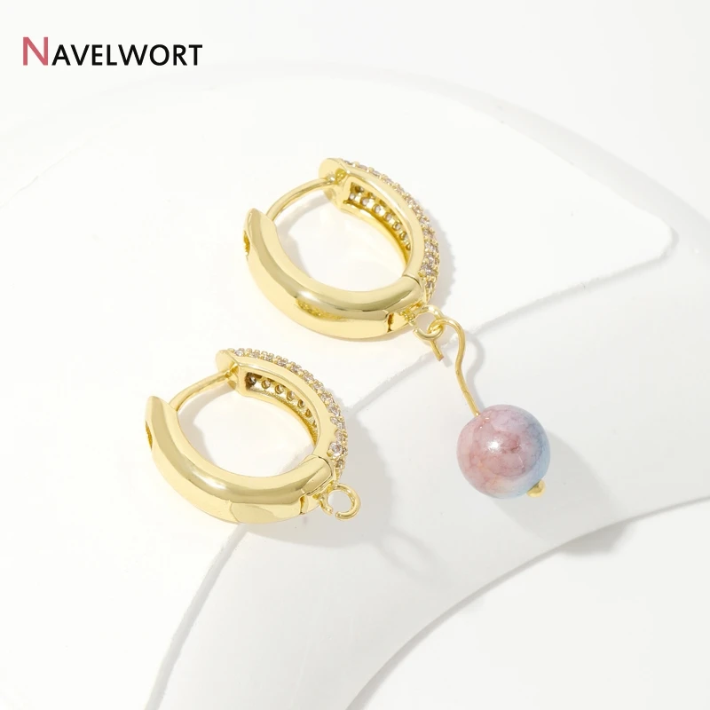 18K Gold Plated Brass With Zircon Round Earring Hooks,Hoop Earring Fittings For Women Jewelry Making,Accessories