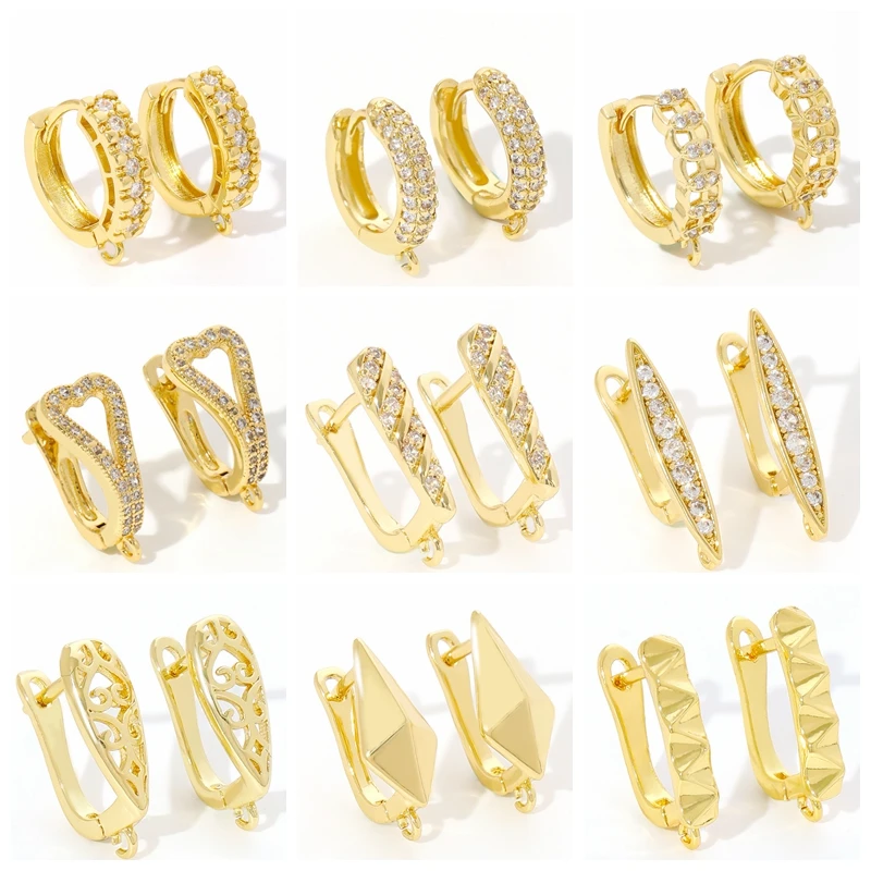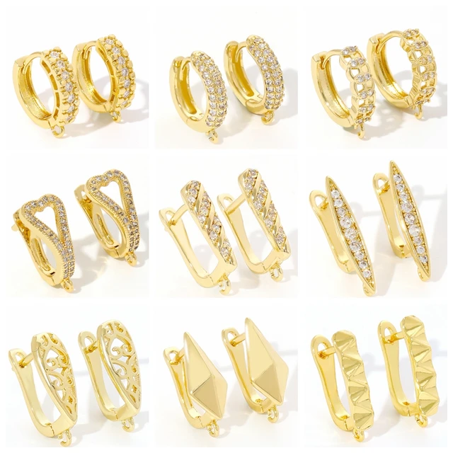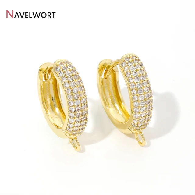 18K Gold Plated Brass With Zircon Round Earring Hooks,Hoop Earring Fittings For Women Jewelry Making,Accessories For Earring