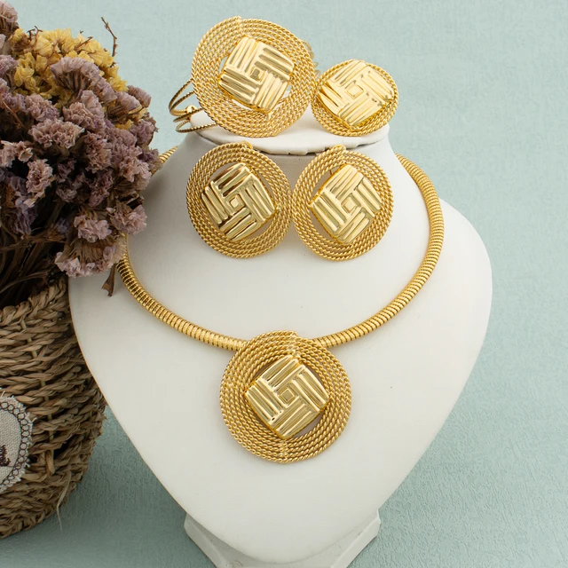18k Gold Plated Jewelry Set for Women Brazilian Necklace New Design Earrings Set Italian Expensive Wedding
