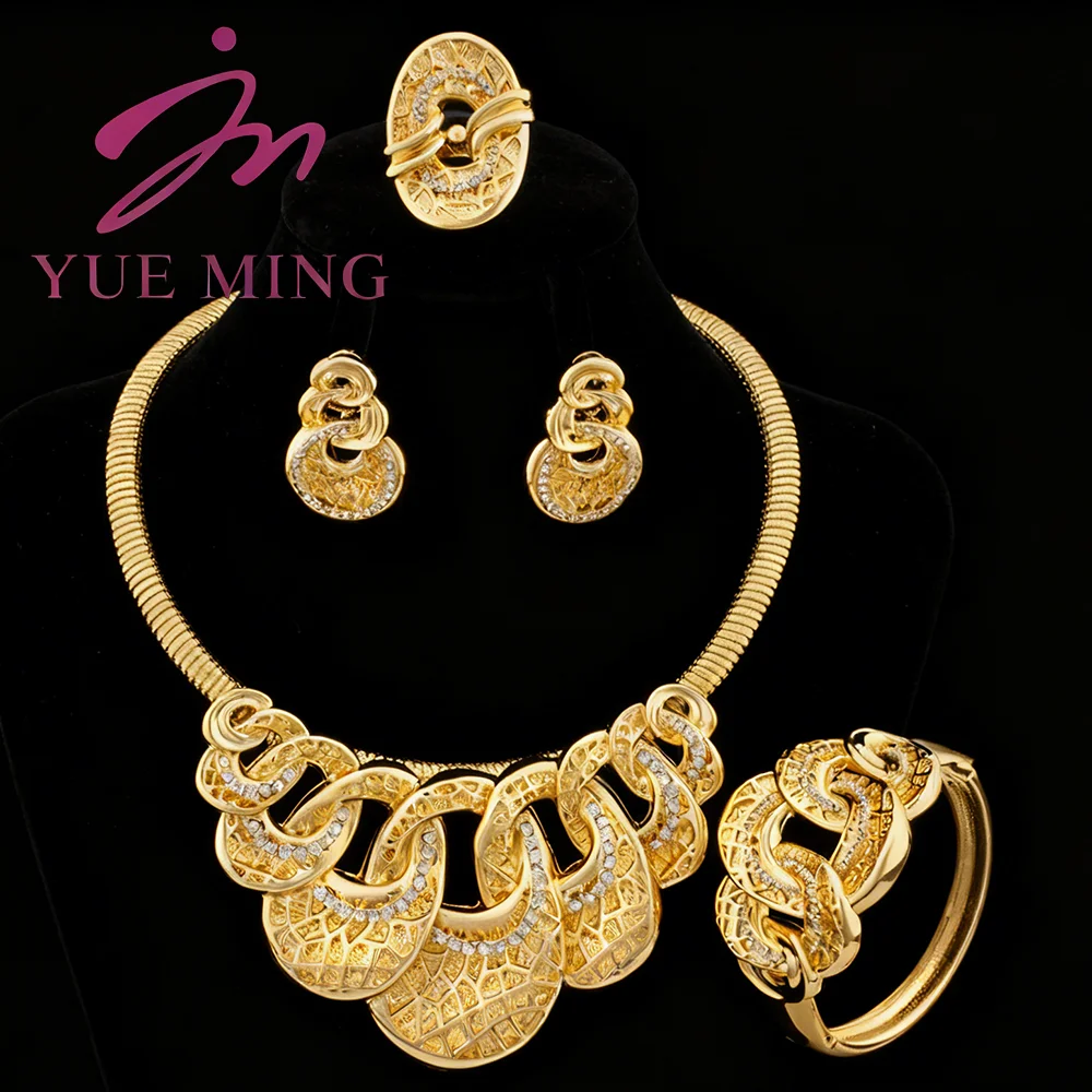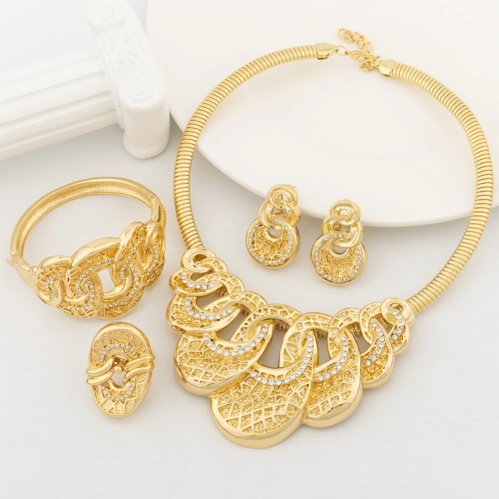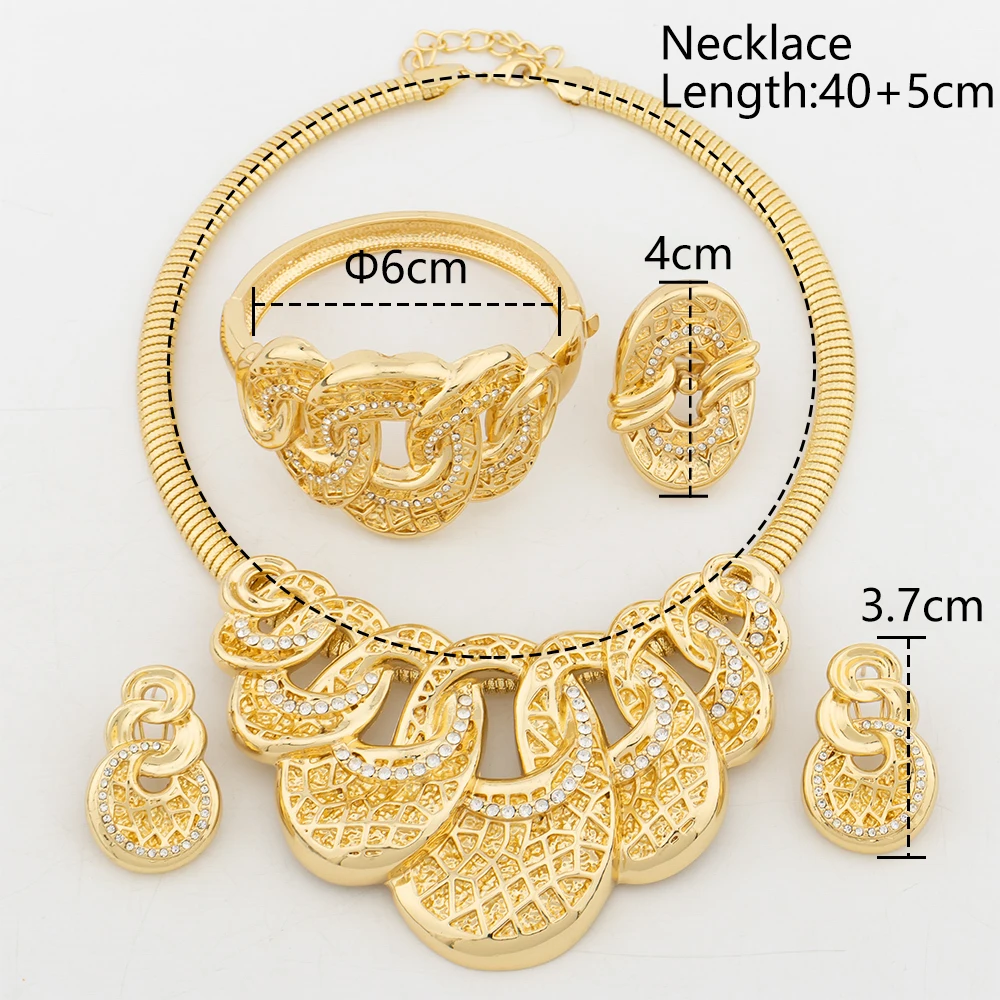 Woman Jewelry Set Luxury Gold Color Zircon Necklace Earrings Wedding Party Jewellery Dubai Charm Bracelet Ring Anniversary Gifts