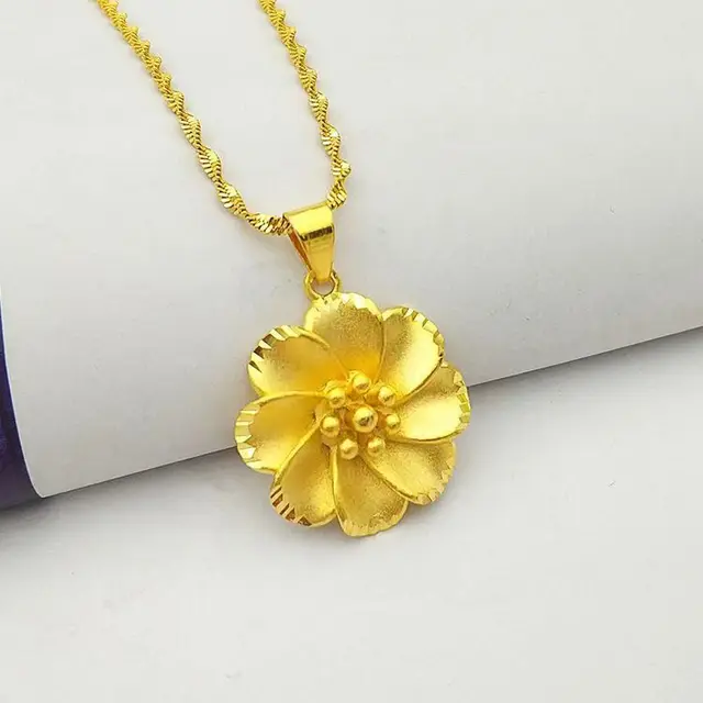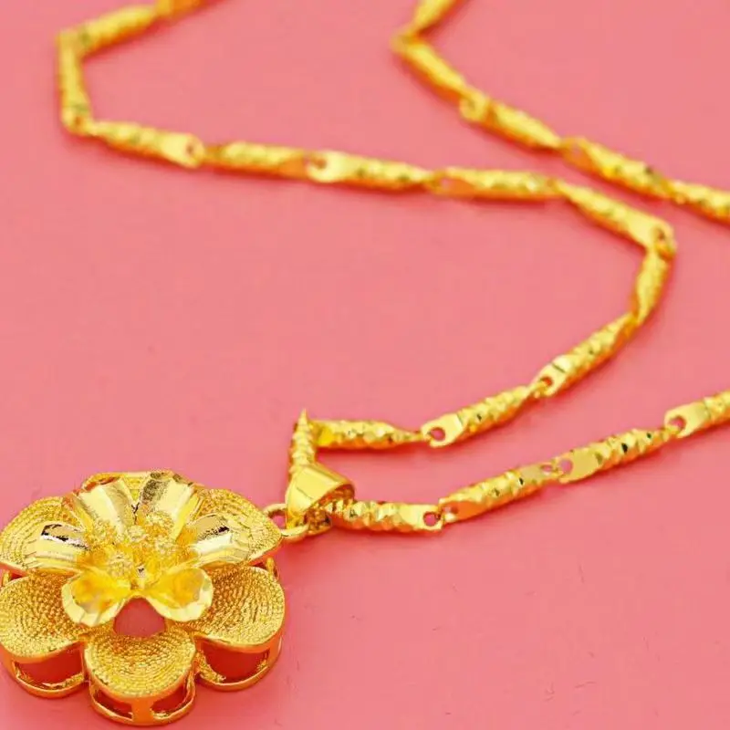 18K Pure Gold AU999 Women's Necklace with Large 3D Flower Pendant Luxury High-Quality Jewelry for Ladies Boutique New Arrival