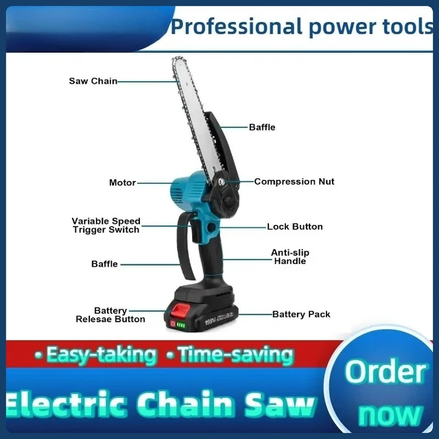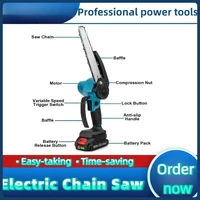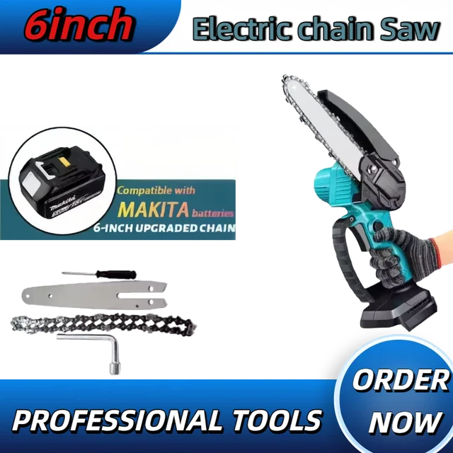 18V Battery Fit Makita 6 Inch Chain Saw Electric Saw Handheld Portable Wood Logging Chainsaw Garden