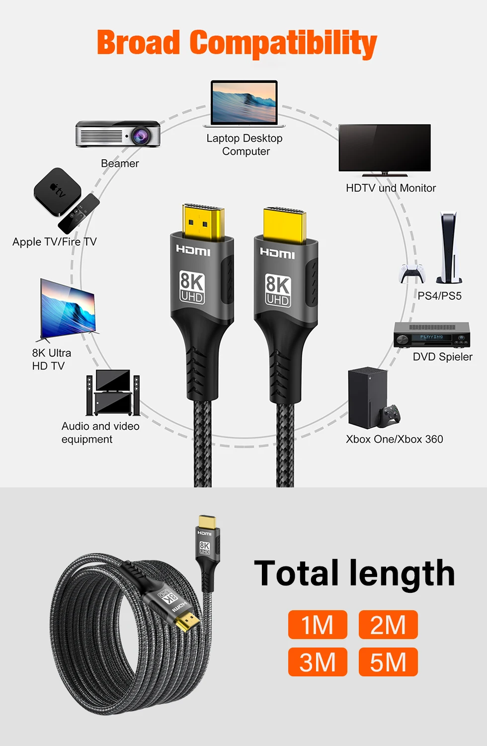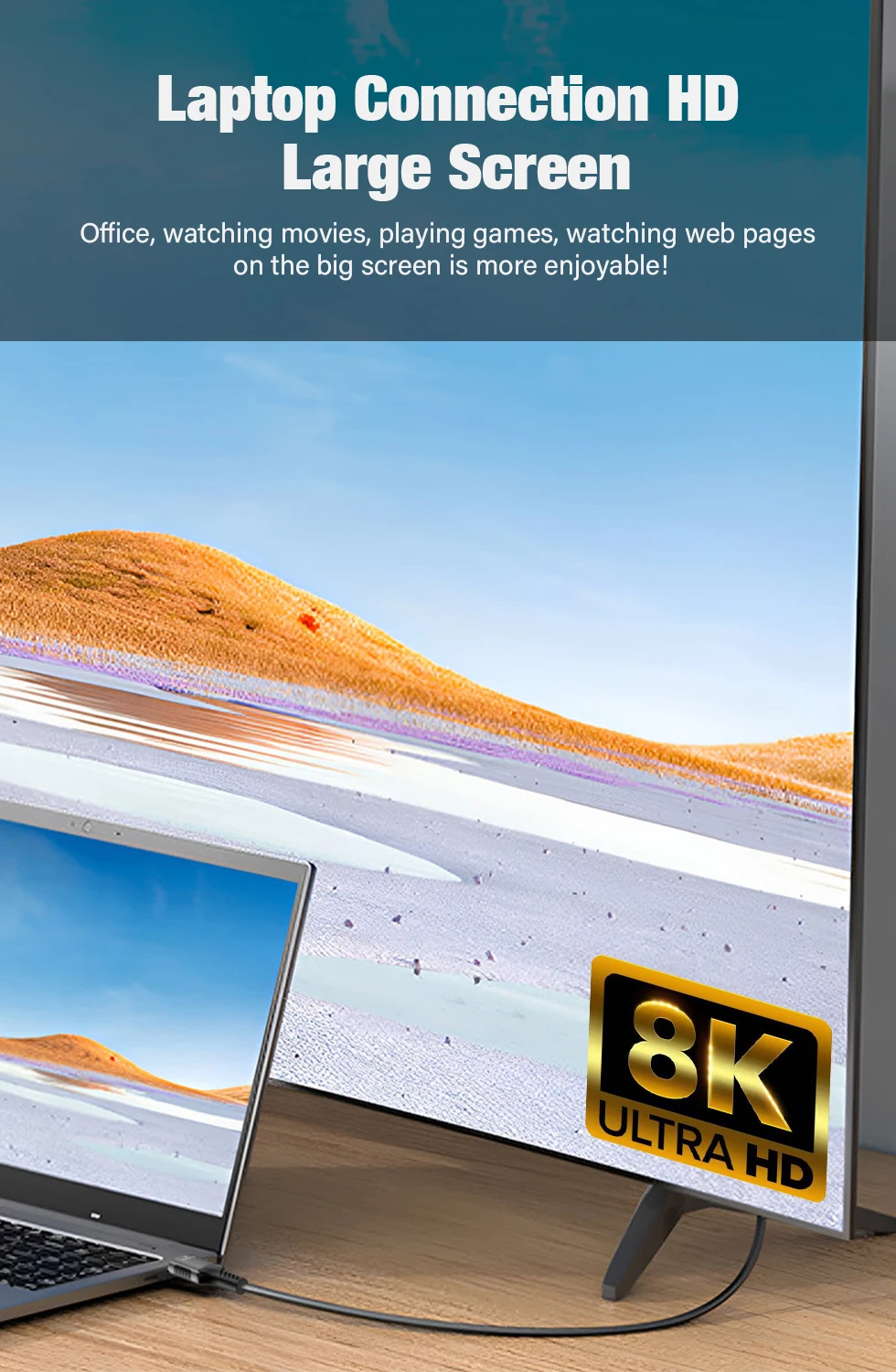 8K 4K 60Hz 30Hz USB C to HDMI Cable Type C Adapter HDTV Converter Cable for iPhone 15 TV Converter MacBook Air iPad Samsung