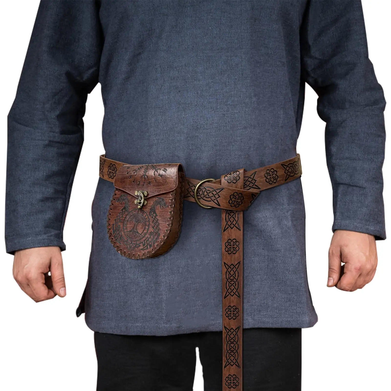 1Pc/2Pcs Medieval Viking Vintage Belt, Unisex Embossed Leather Fanny Pack, Renaissance Knight Accessories,