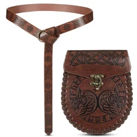 1Pc/2Pcs Medieval Viking Vintage Belt, Unisex Embossed Leather Fanny Pack, Renaissance Knight Accessories,