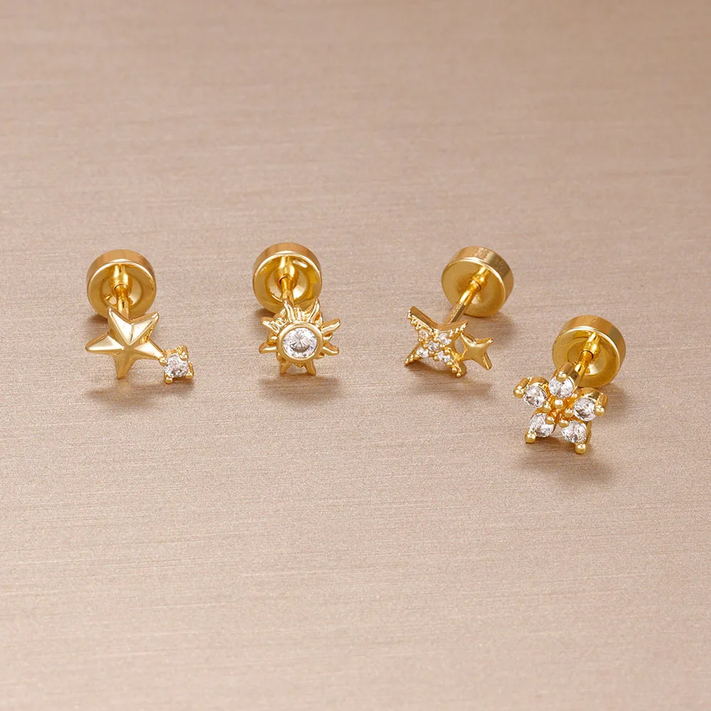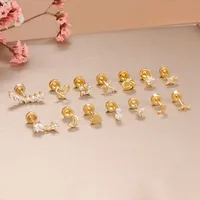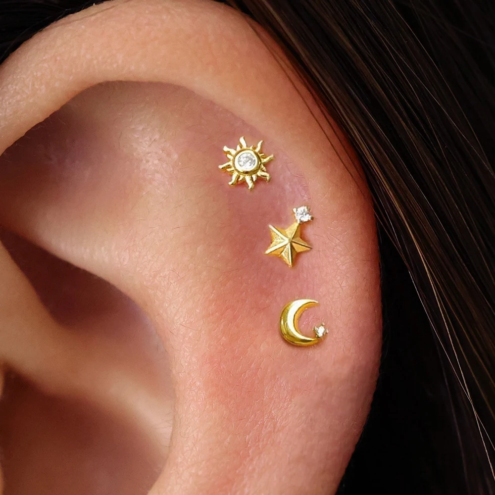 1PC Stainless Steel Star Moon Cartilage Piercing Earrings 18K Gold Plated Helix Tragus Ear Stud Earring Body Jewelry Bijoux Gift