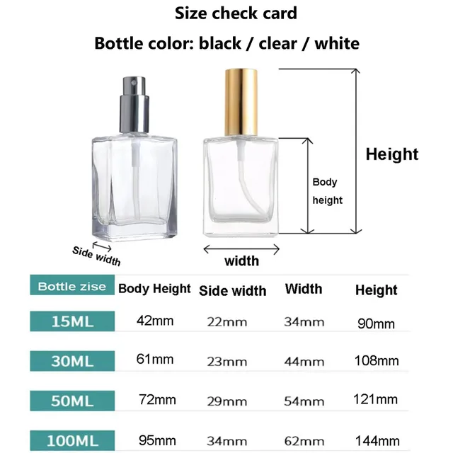 Refillable Perfume Atomizer Square Flat Glass Spray Bottle Containers