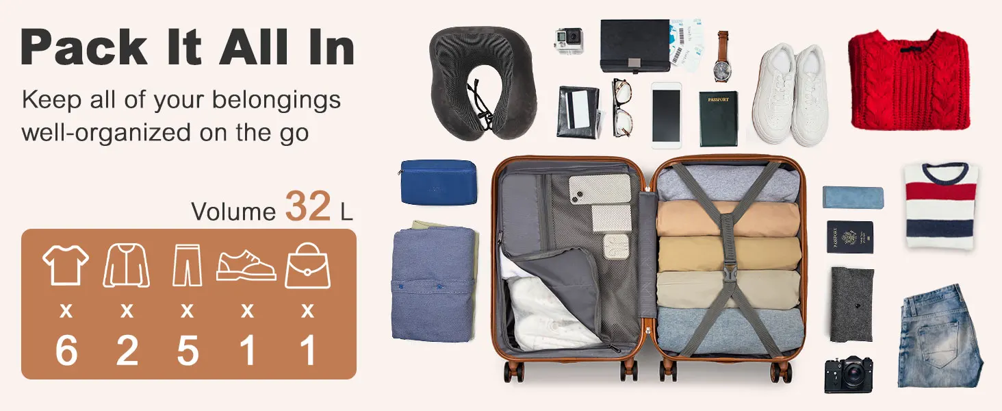 2 & 4 Piece Luggage Set with Makeup Case – ABS Hard Shell Suitcases, TSA Lock, Lightweight