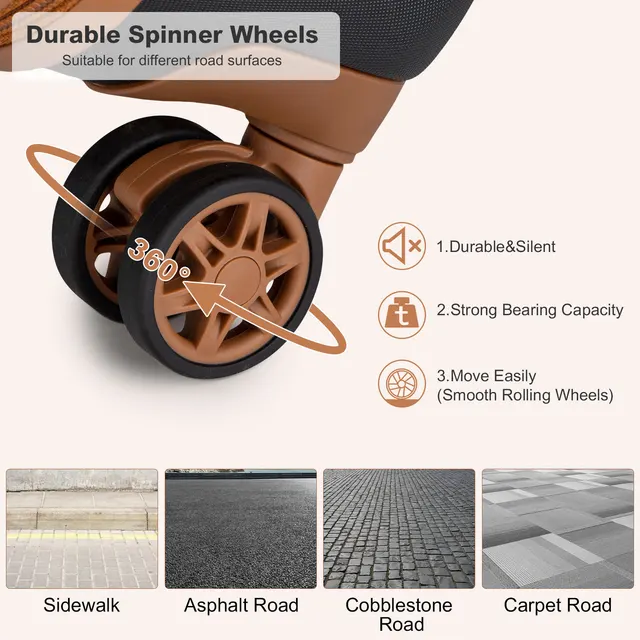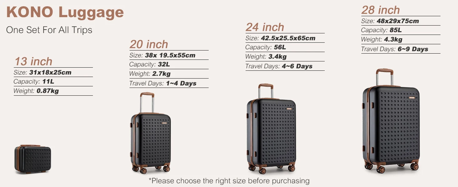 Modishion Stylish Classic Hardshell Lightweight Luggage Travel Suitcase Spinner Zipper Lock Carry-On Luggage, 20/24/28"