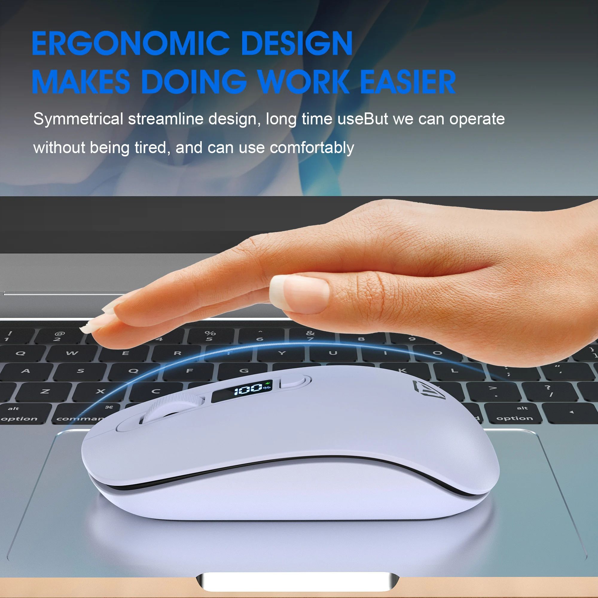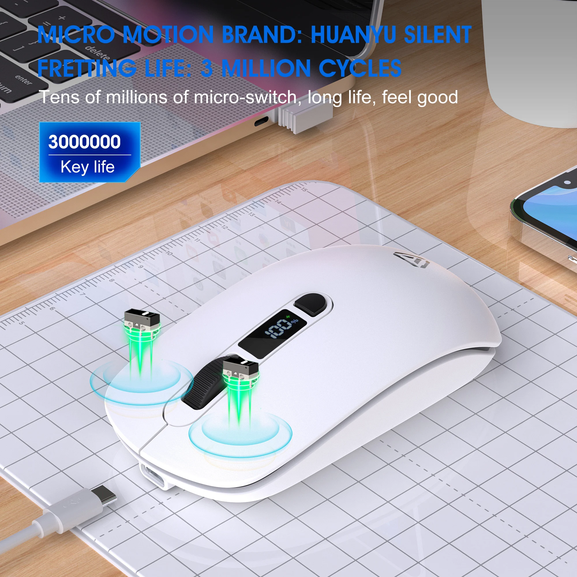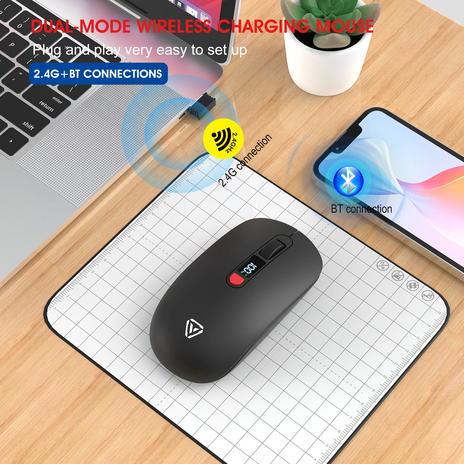 2.4G Bluetooth Wireless Mouse Mute Button Rechargeable 500mA Battery Laptop Office Computer Digital Display