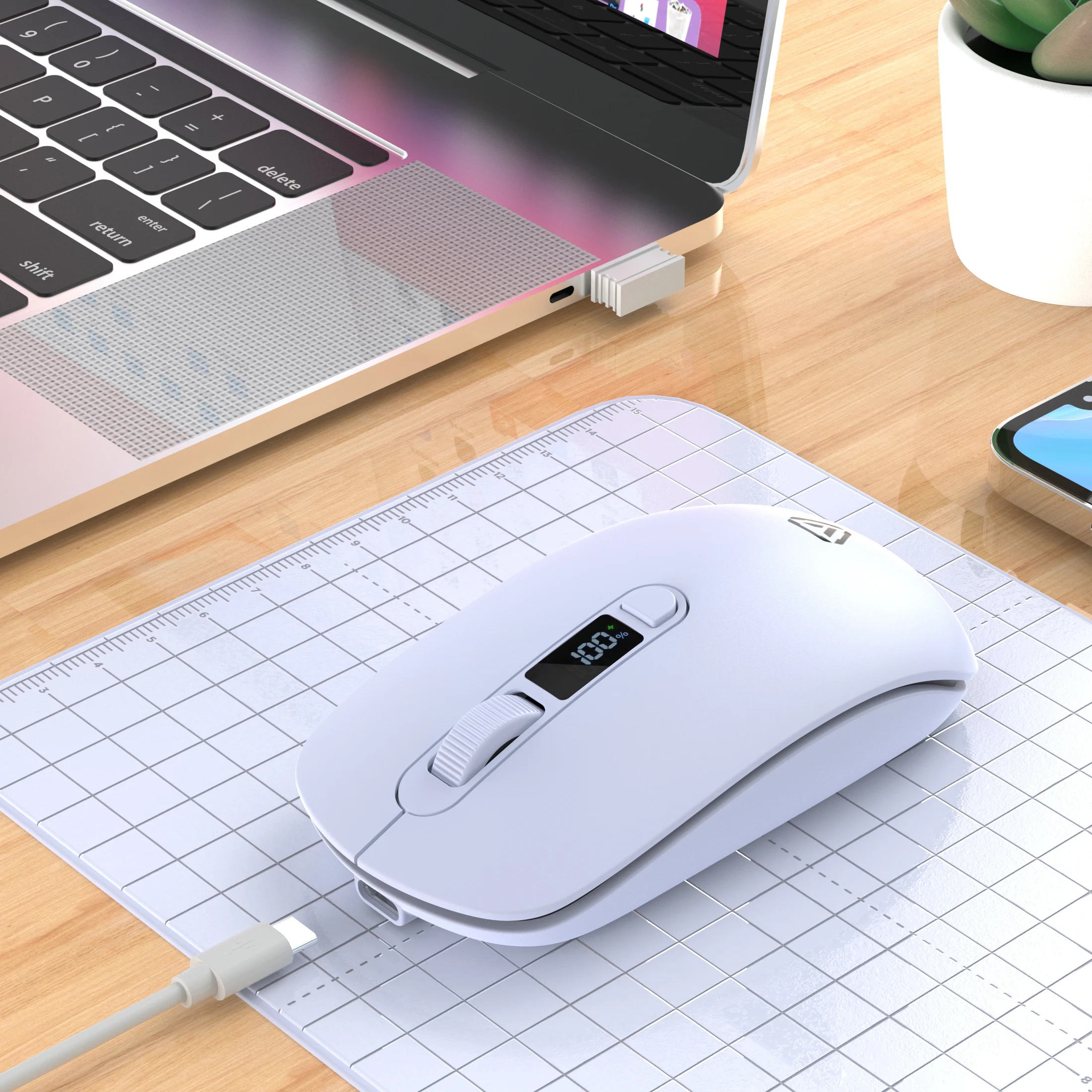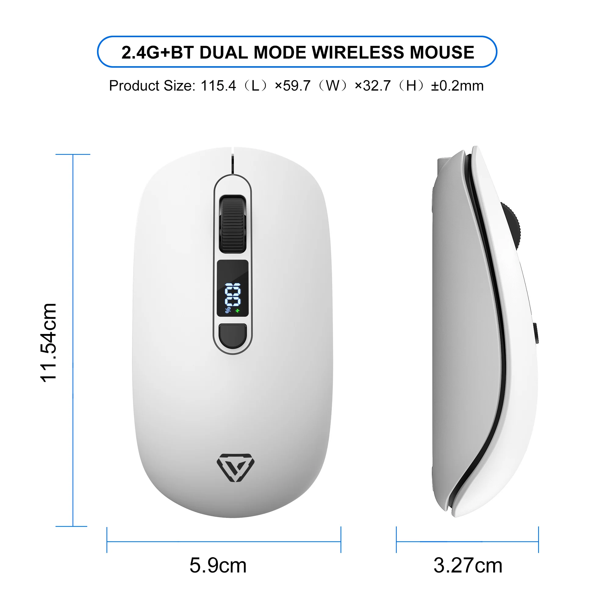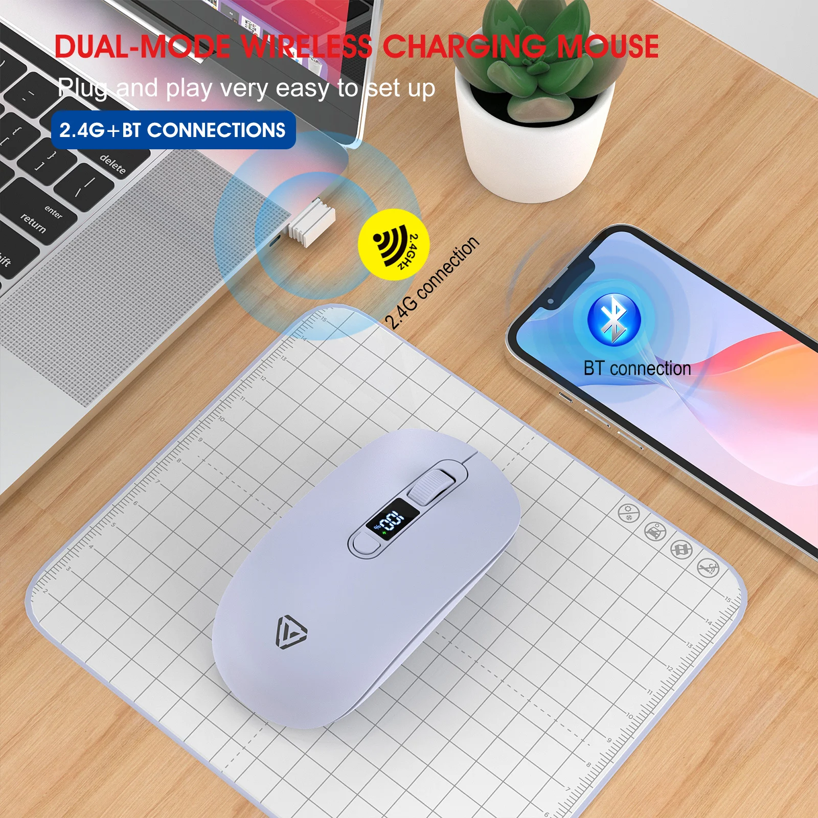 2.4G Bluetooth Wireless Mouse Mute Button Rechargeable 500mA Battery Laptop Office Computer Digital Display Battery Level 4 DPI