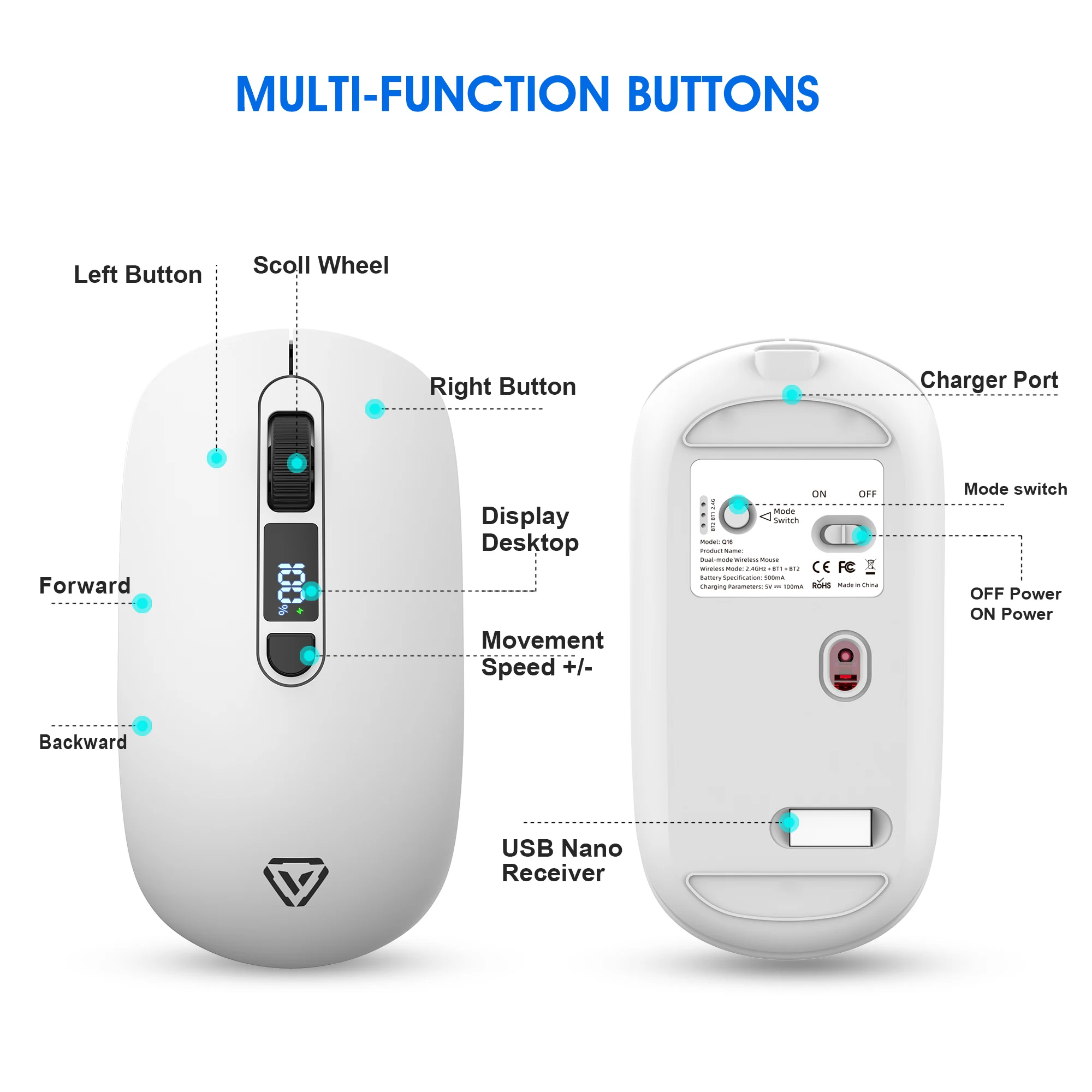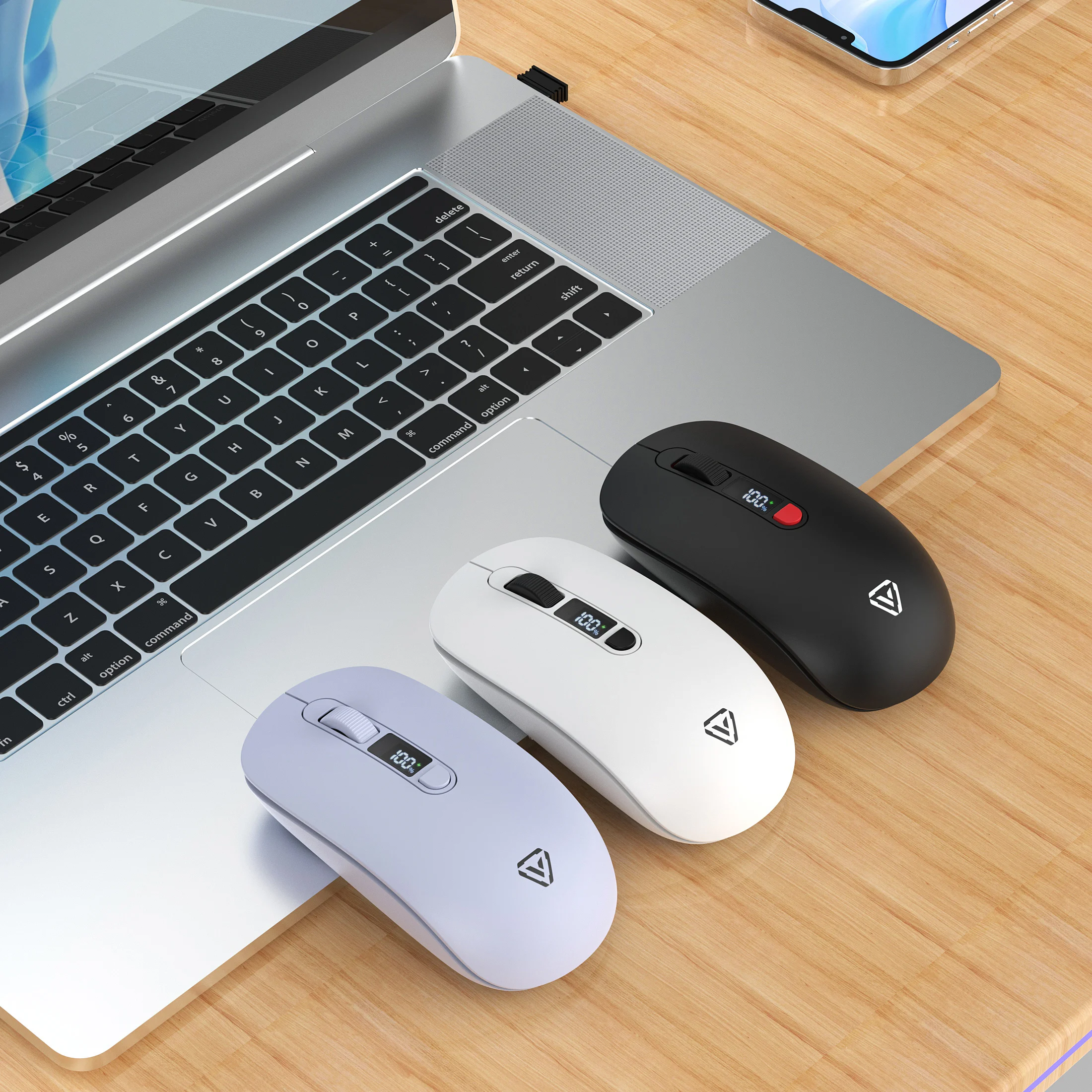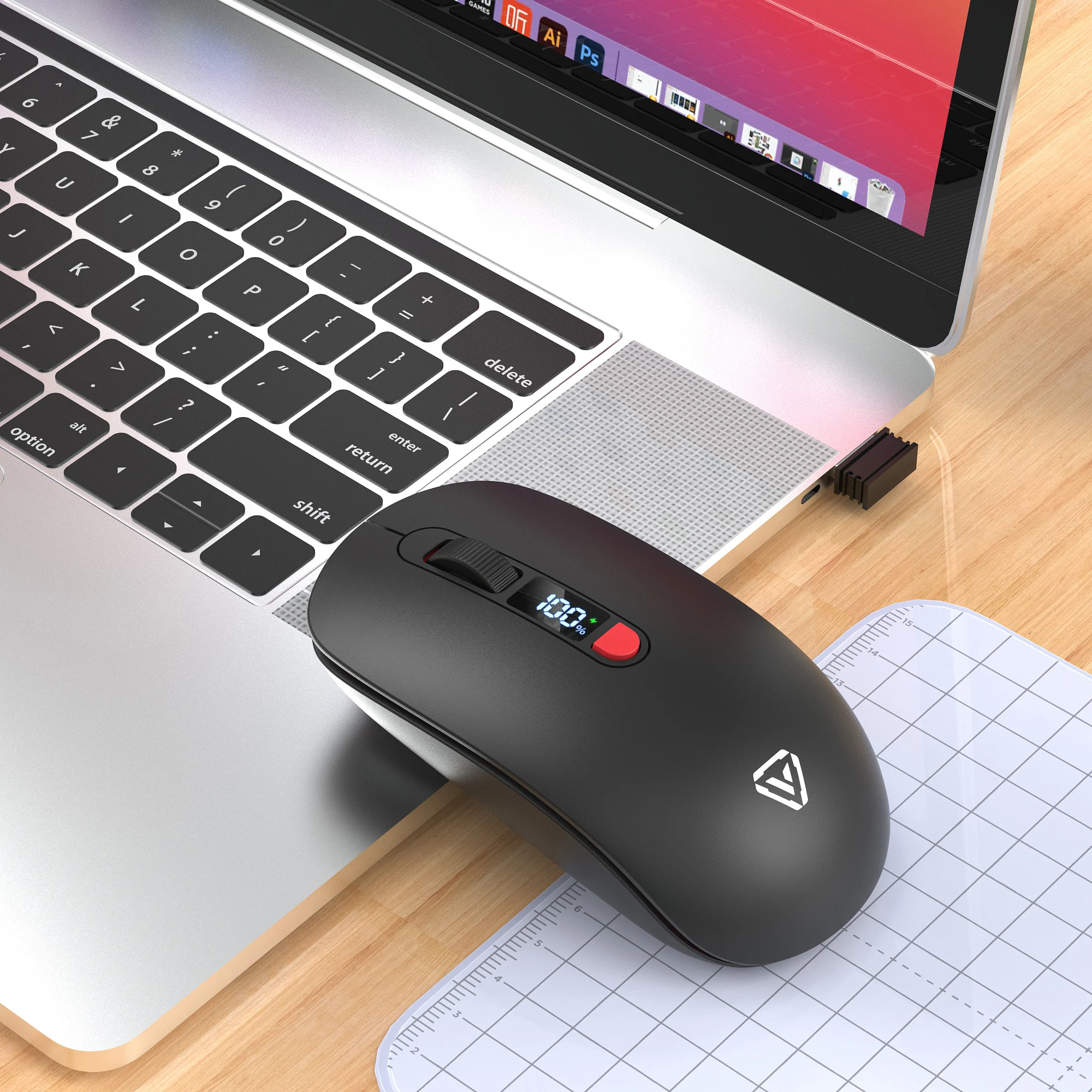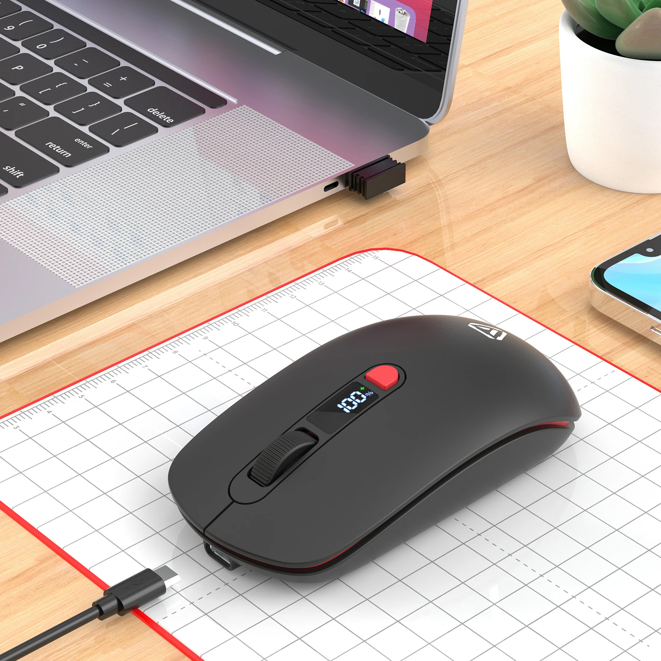2.4G Bluetooth Wireless Mouse Mute Button Rechargeable 500mA Battery Laptop Office Computer Digital Display Battery Level 4 DPI