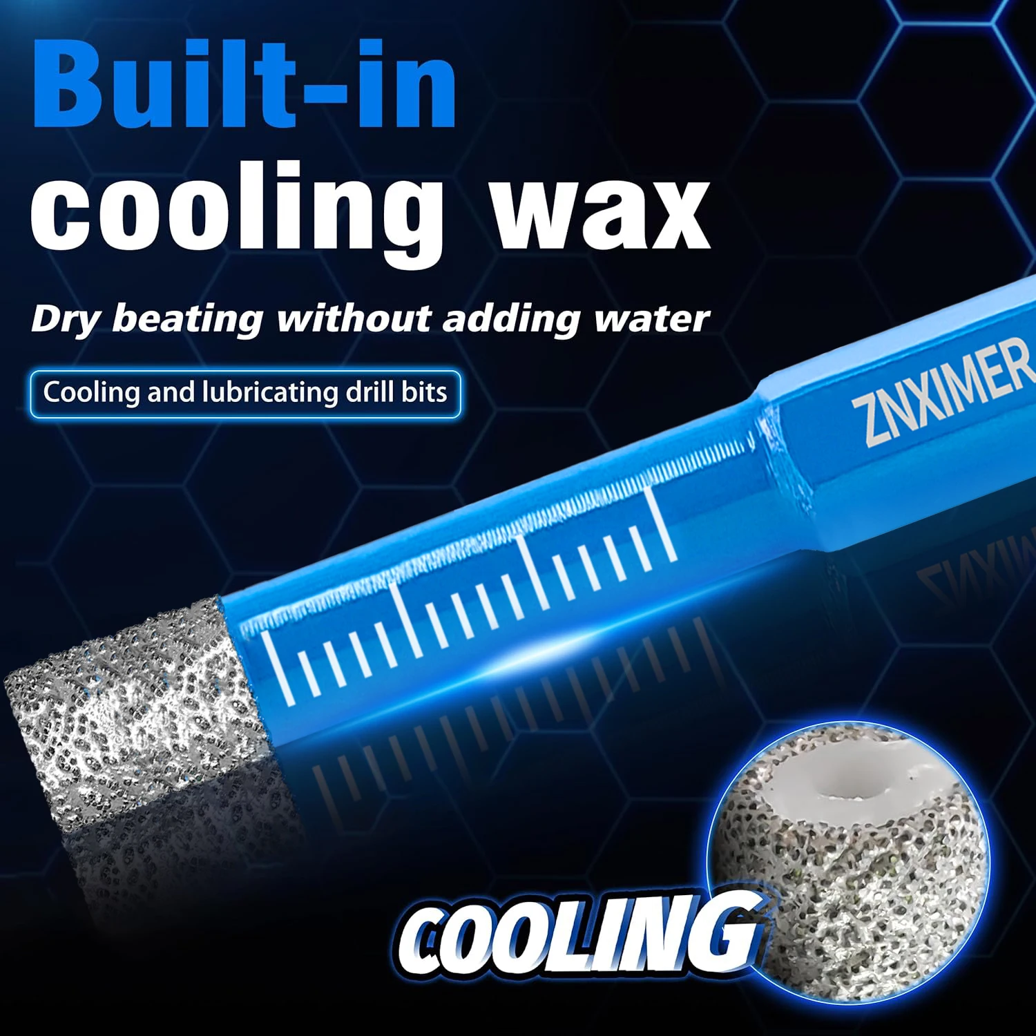 Wax inside for cooling, Dry drilling without water.