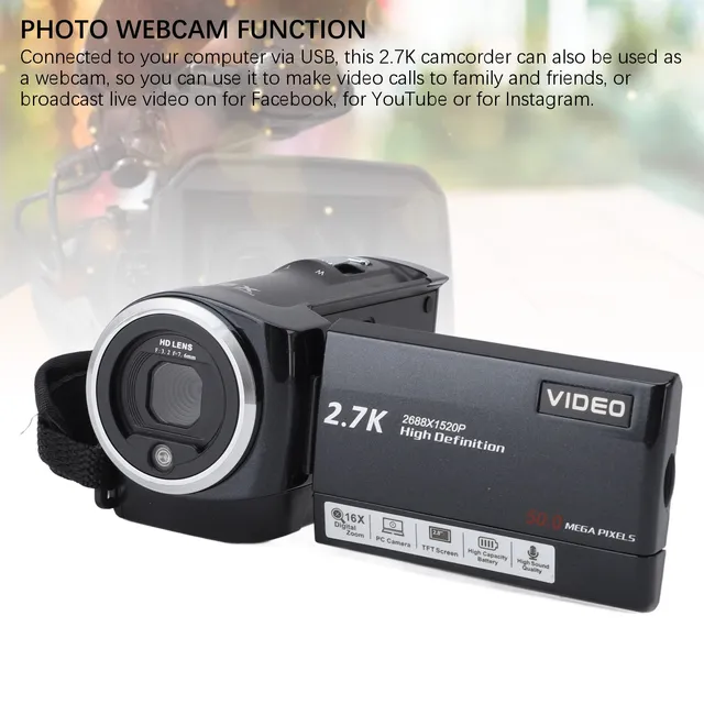 2. PHOTO WEBCAM FUNCTION: Connected to your computer via USB, this 2.7K camcorder can also be used as a webcam, so you can use it to make video calls to family and friends, or broadcast live video on for Facebook, for YouTube or for Instagram.