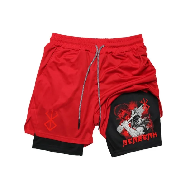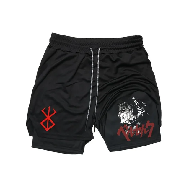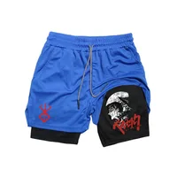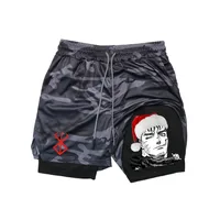 FrierenPrint 2in1 Running Workout Shorts Men Gym Performance Compression Shorts with Phone Pocket Towel Loop Athletic Activewear