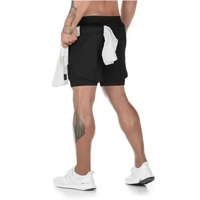 Guts Print 2in1 Running Workout Shorts Men Gym Performance Compression Shorts with Phone Pocket Towel Loop Athletic Activewear