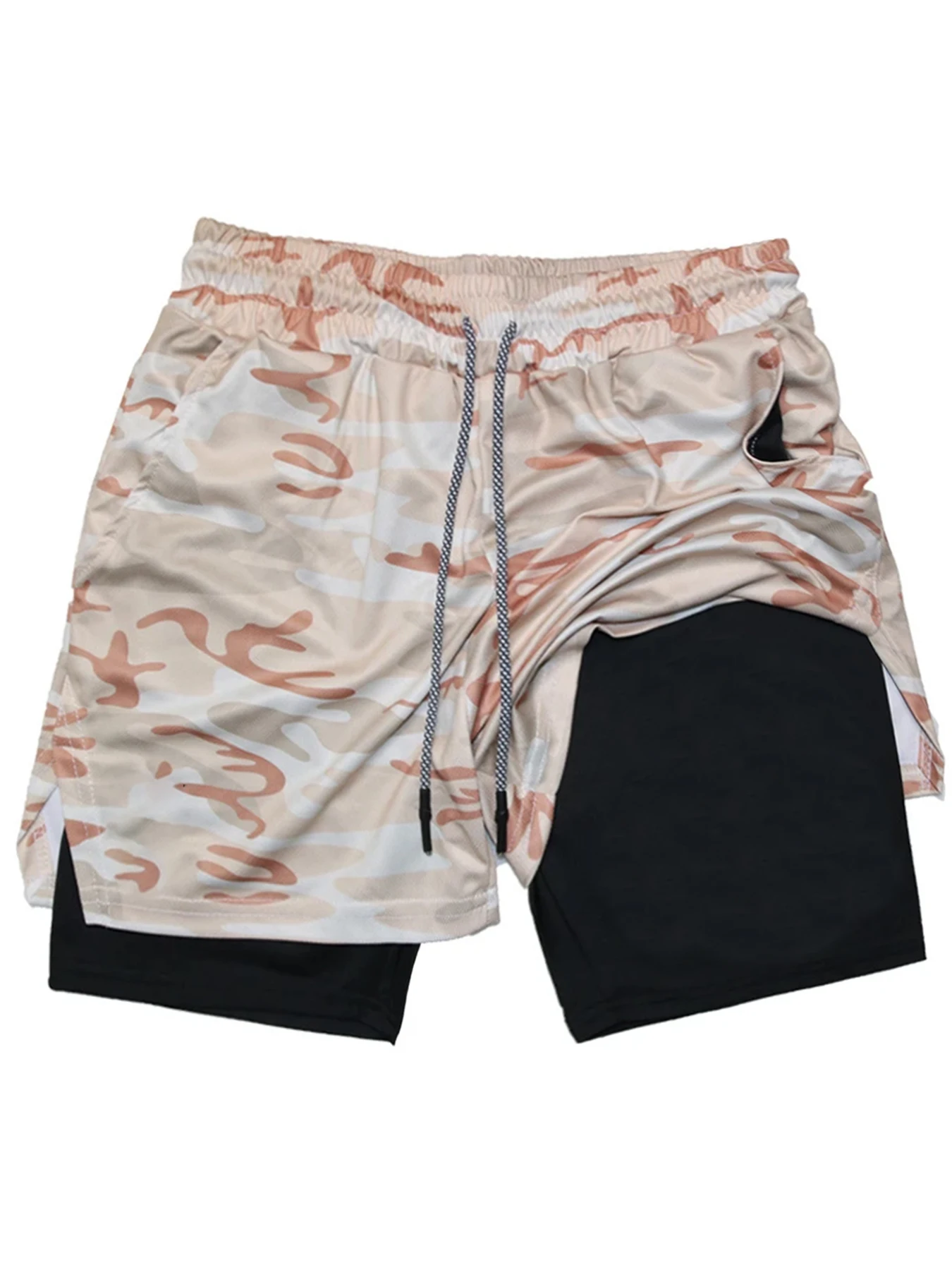 Print 2 in 1 Running Shorts for Men Gym Workout Compression Shorts with Phone Pocket Towel Loop Summer Sport Athletic Activewear
