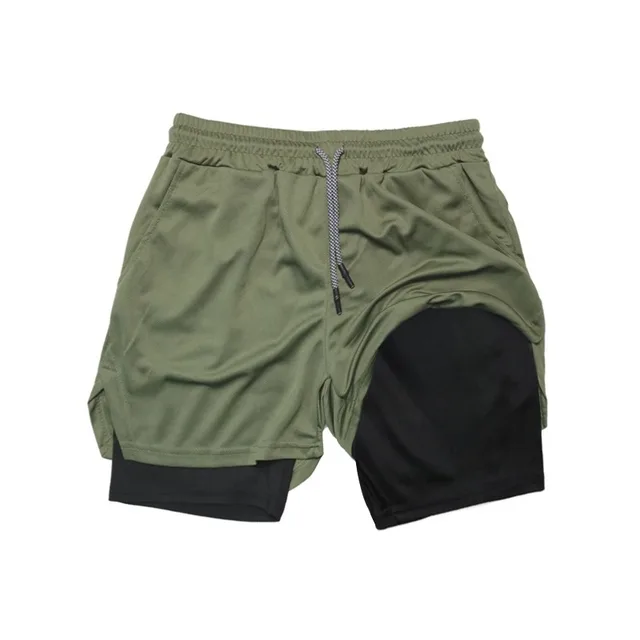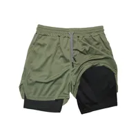 2-in-1 Running Summer Workout Shorts for Men Gym Performance Compression Shorts with Phone Pocket Towel