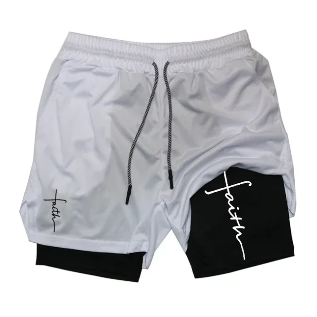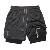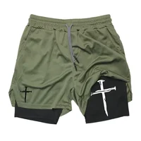 2-in-1 Workout Running Shorts for Men Summer Gym Performance Shorts with Phone Pocket Compression Towel