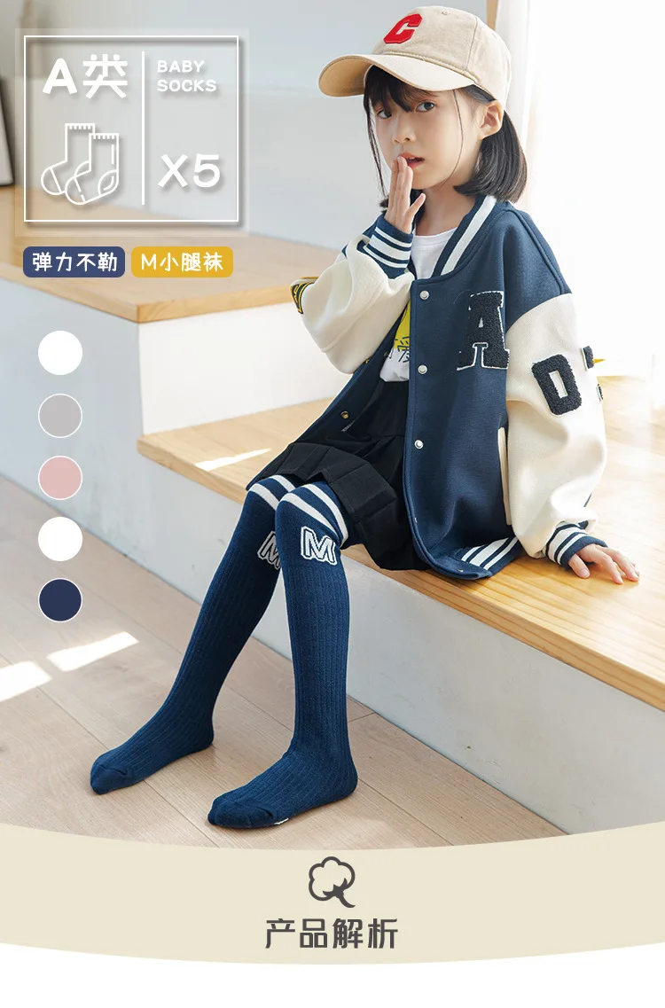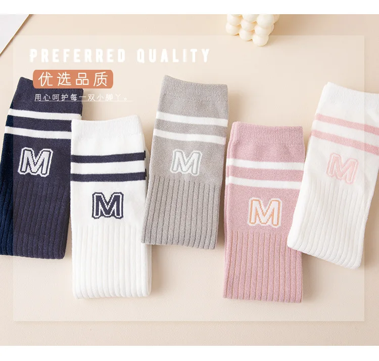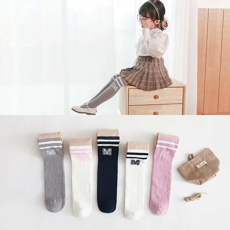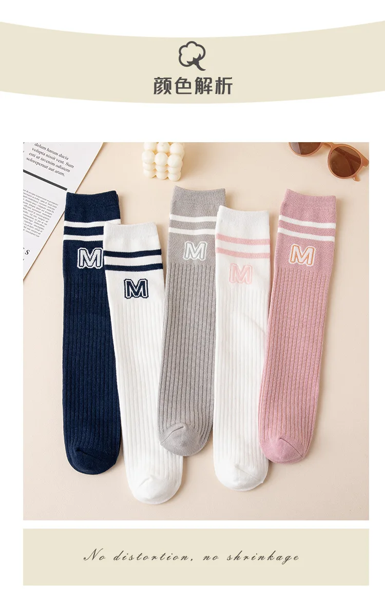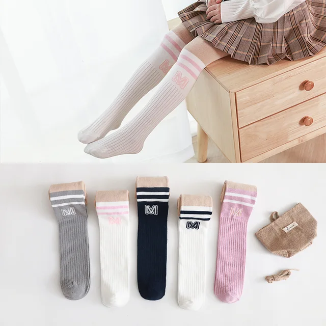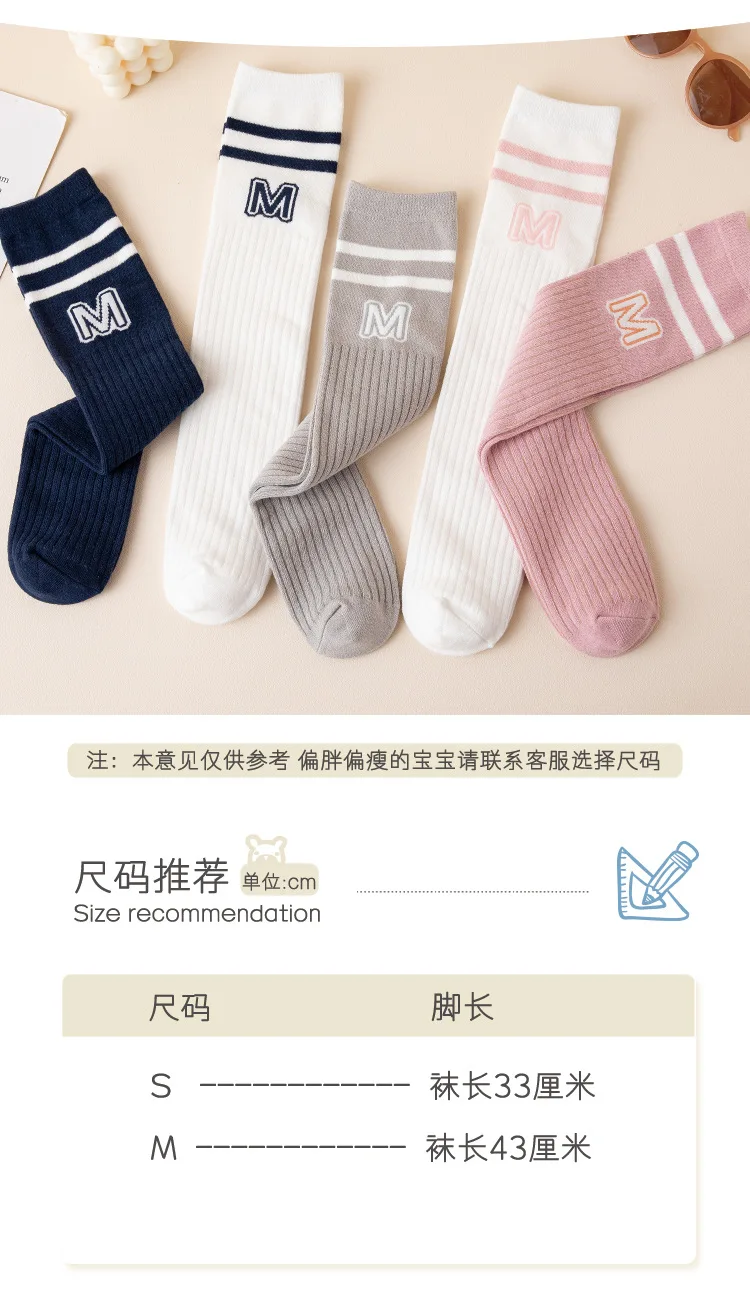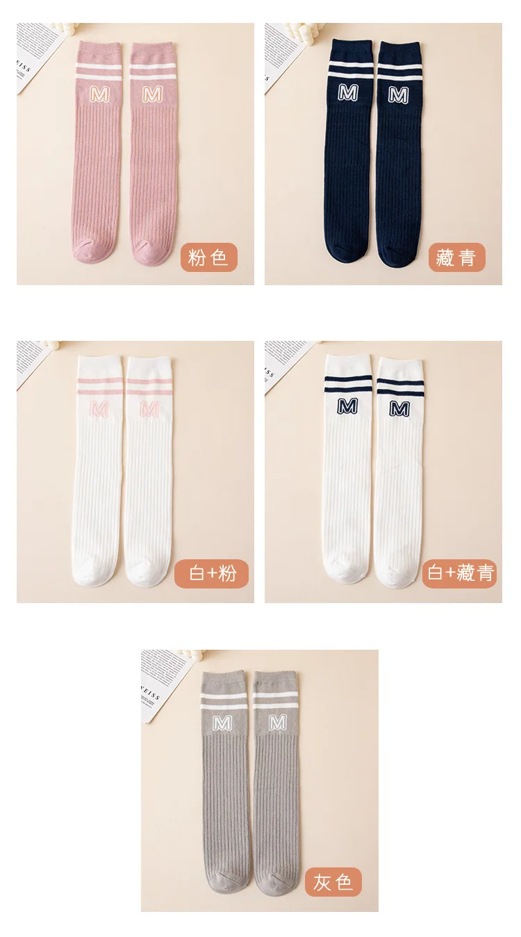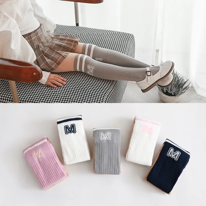 2 Pair/set Sporty Fashion Knee High Sock for Kids Boy Girl Simplicity Letter M Striped Children's Sock Soft Cotton School Sock