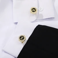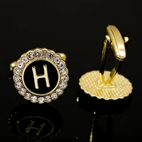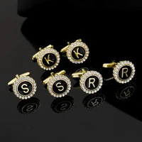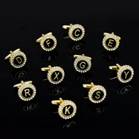 2 Pcs Crystal Around Initial A-Z Cufflinks Alphabet Letter Rhinestone Round Cuff Links For Business Mens