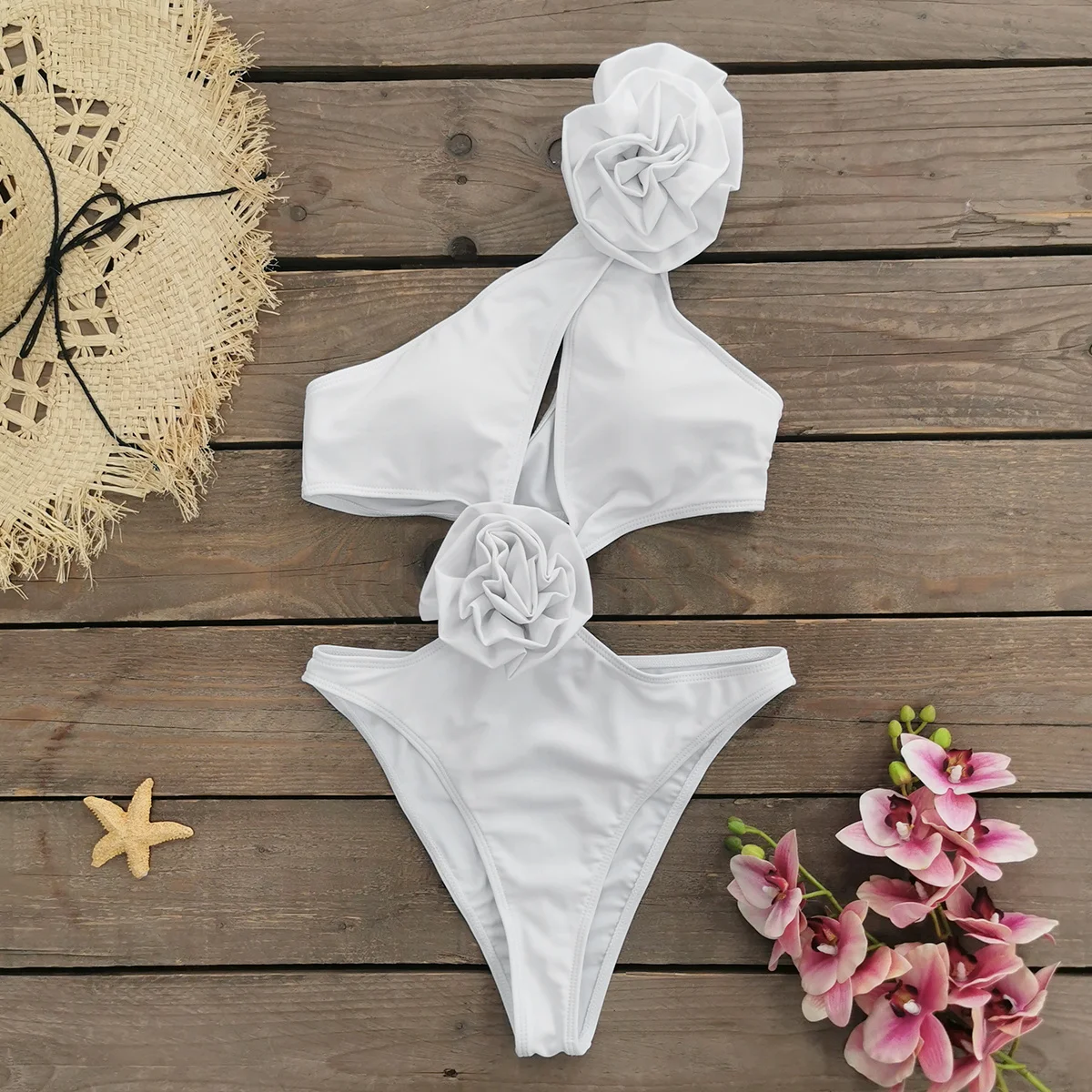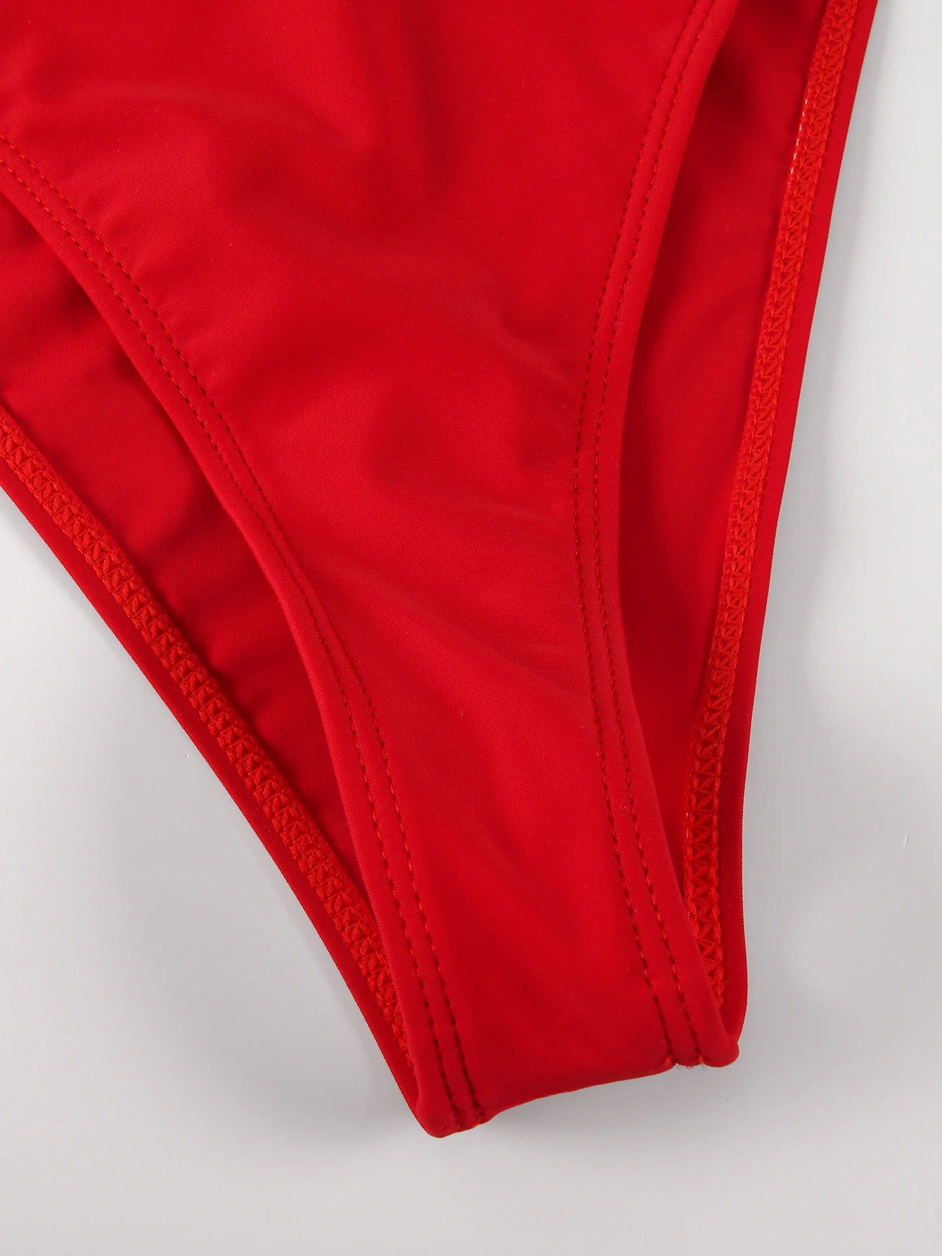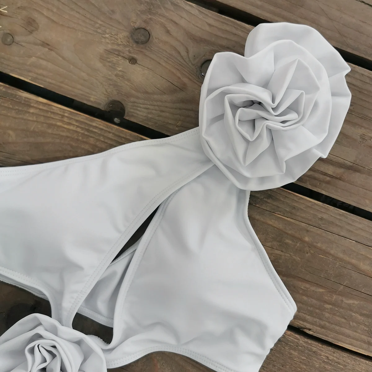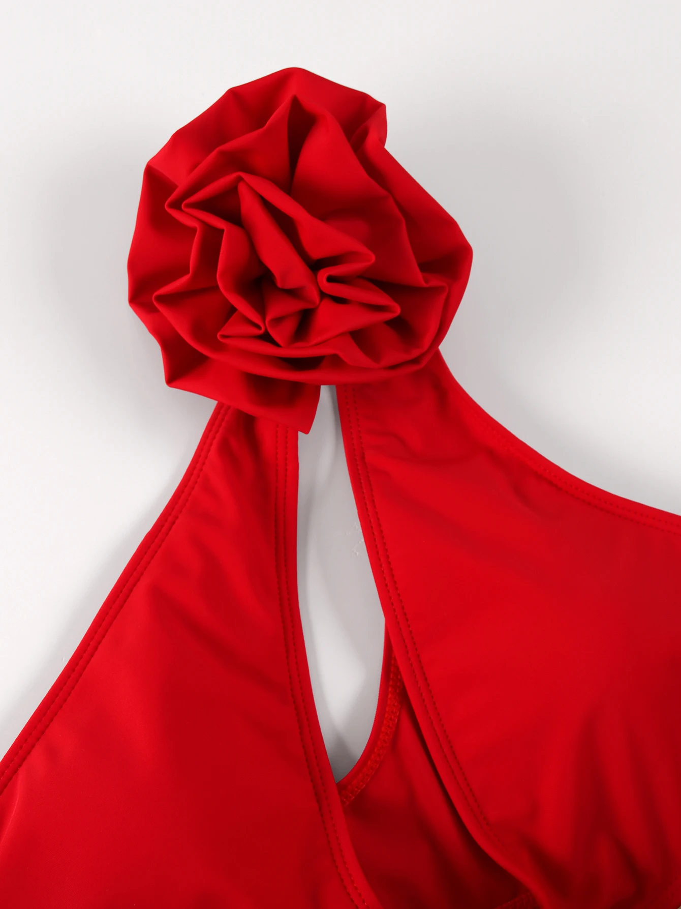 2 Pcs Luxury Woman Swimsuit Sexy Bikini Design 2025 Flower Swimwear Female Red White Cut Out Swim Suit