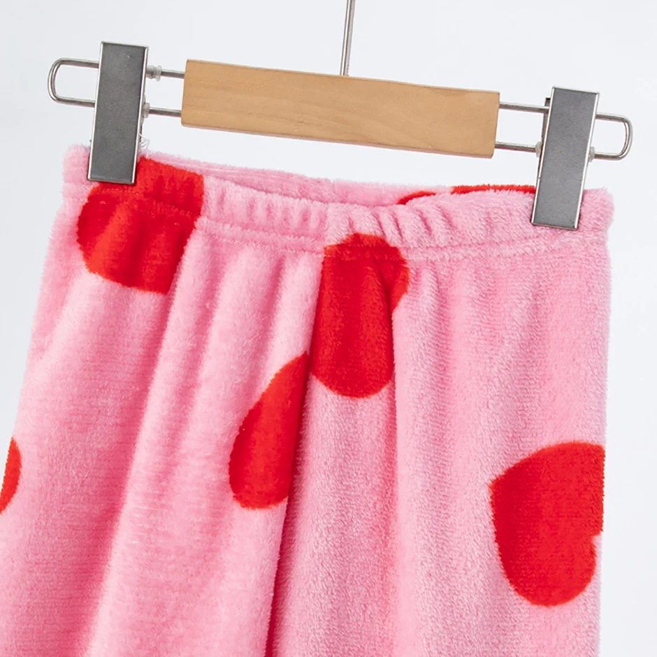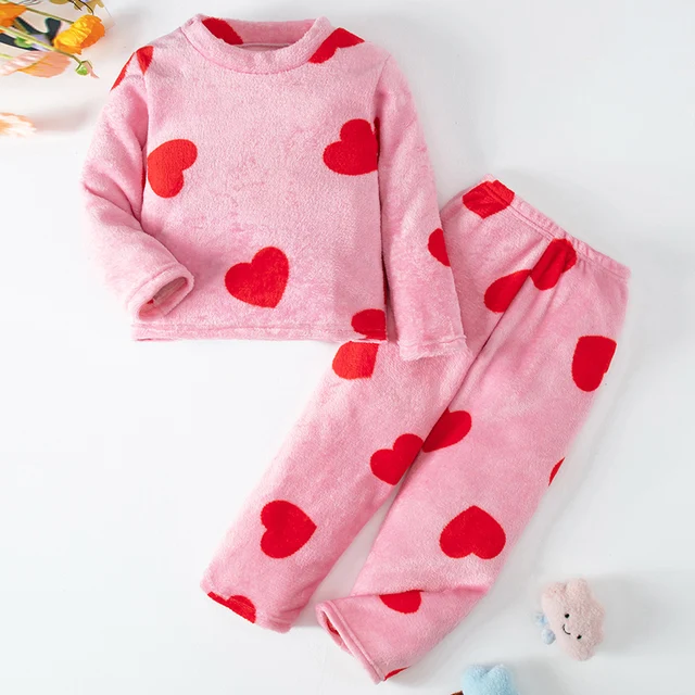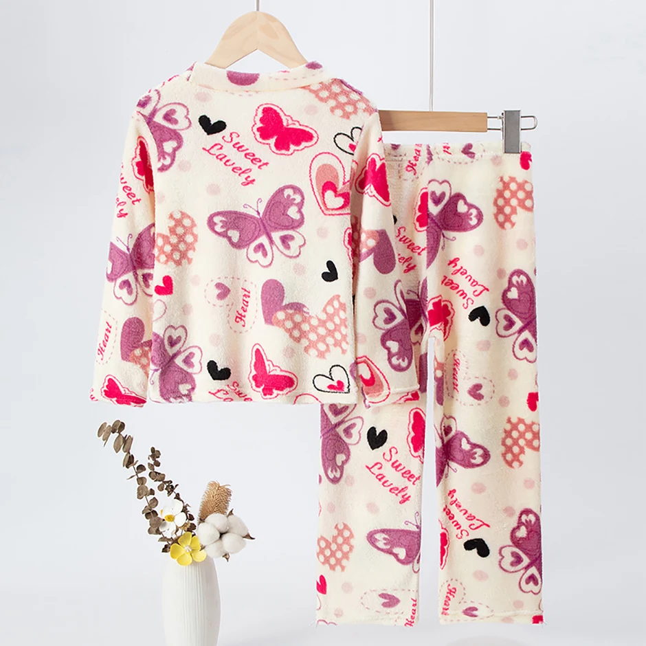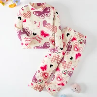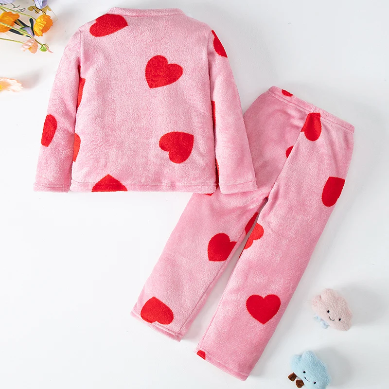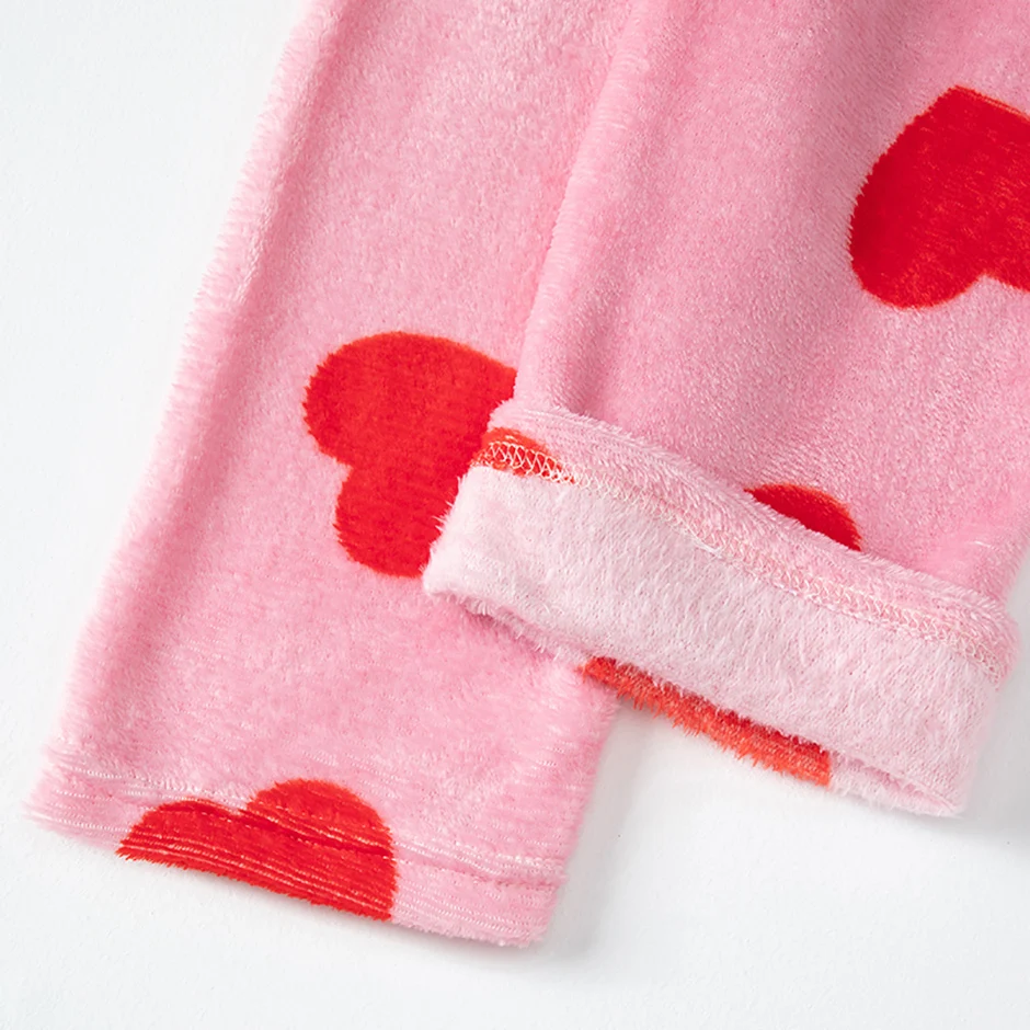 2-piece Children’s Autumn/Winter Flannel Fashion Print Set Girls’ Heart Warming Round Neck