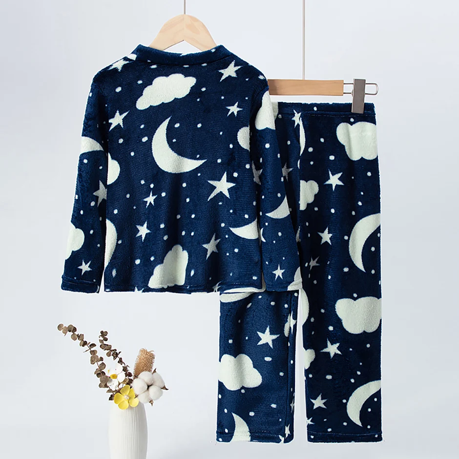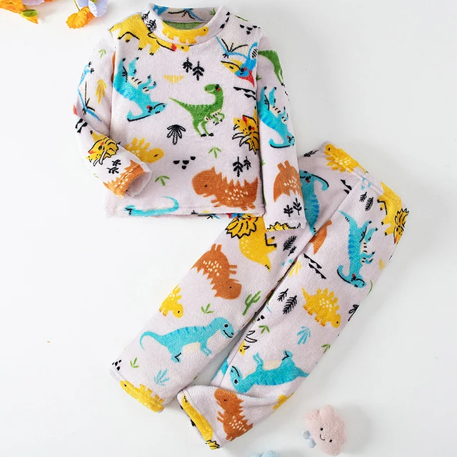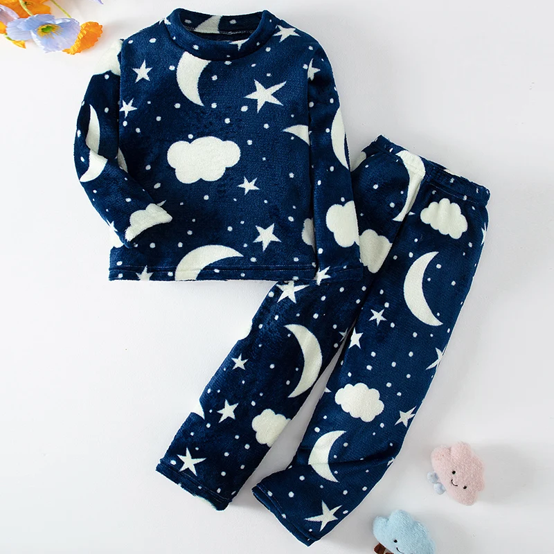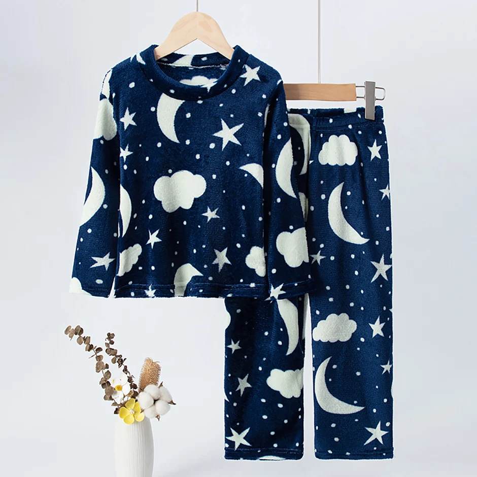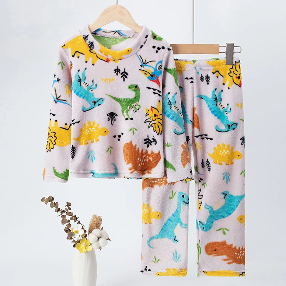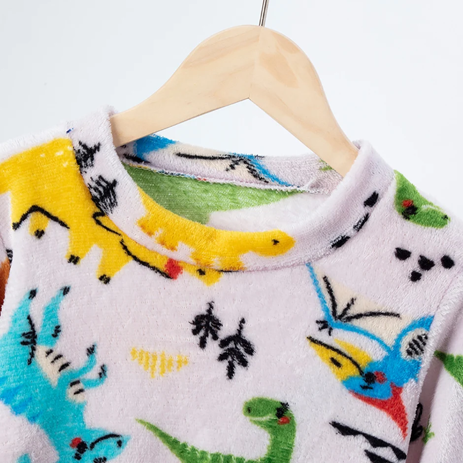 2-piece Children’s Autumn/Winter Flannel Fashion Print Set Girls’ Heart Warming Round Neck