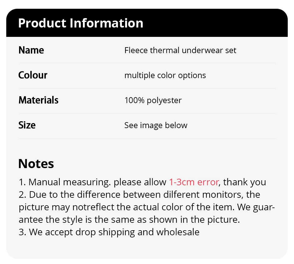 | Thickness | Fleece |