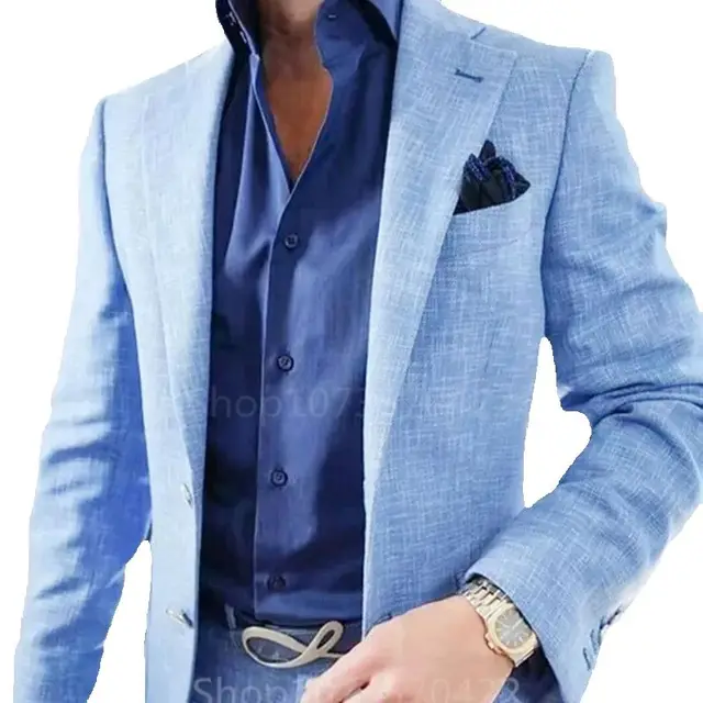 2 Piece Men’s Light Blue Men Suit Beach Wedding Suit Summer Slim Fit Linen Suit Groomsmen For Wedding