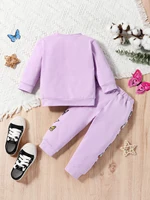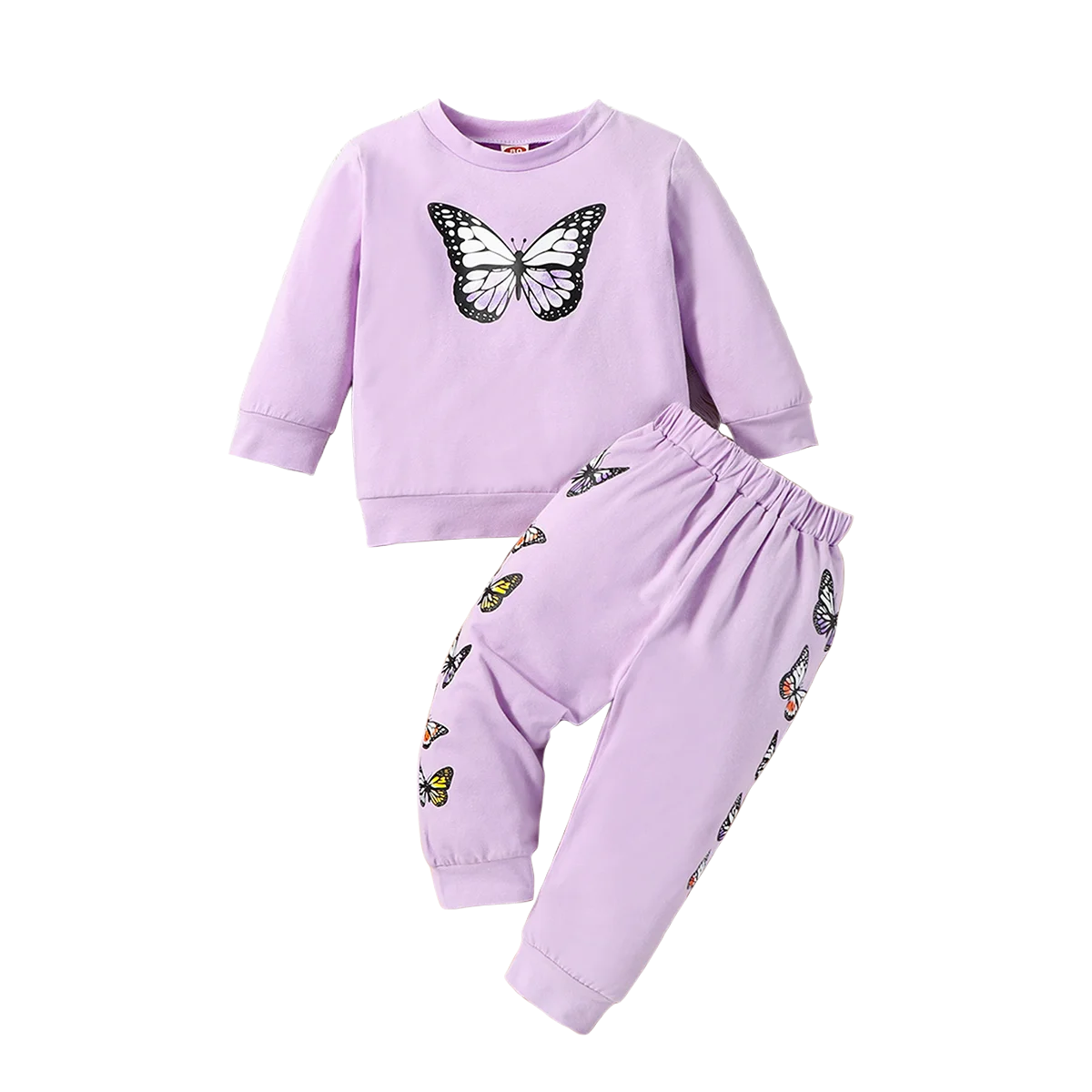 2 pieces set for baby girl, casual butterfly printed round neck long sleeve t-shirt and elastic ankle pants for autumn