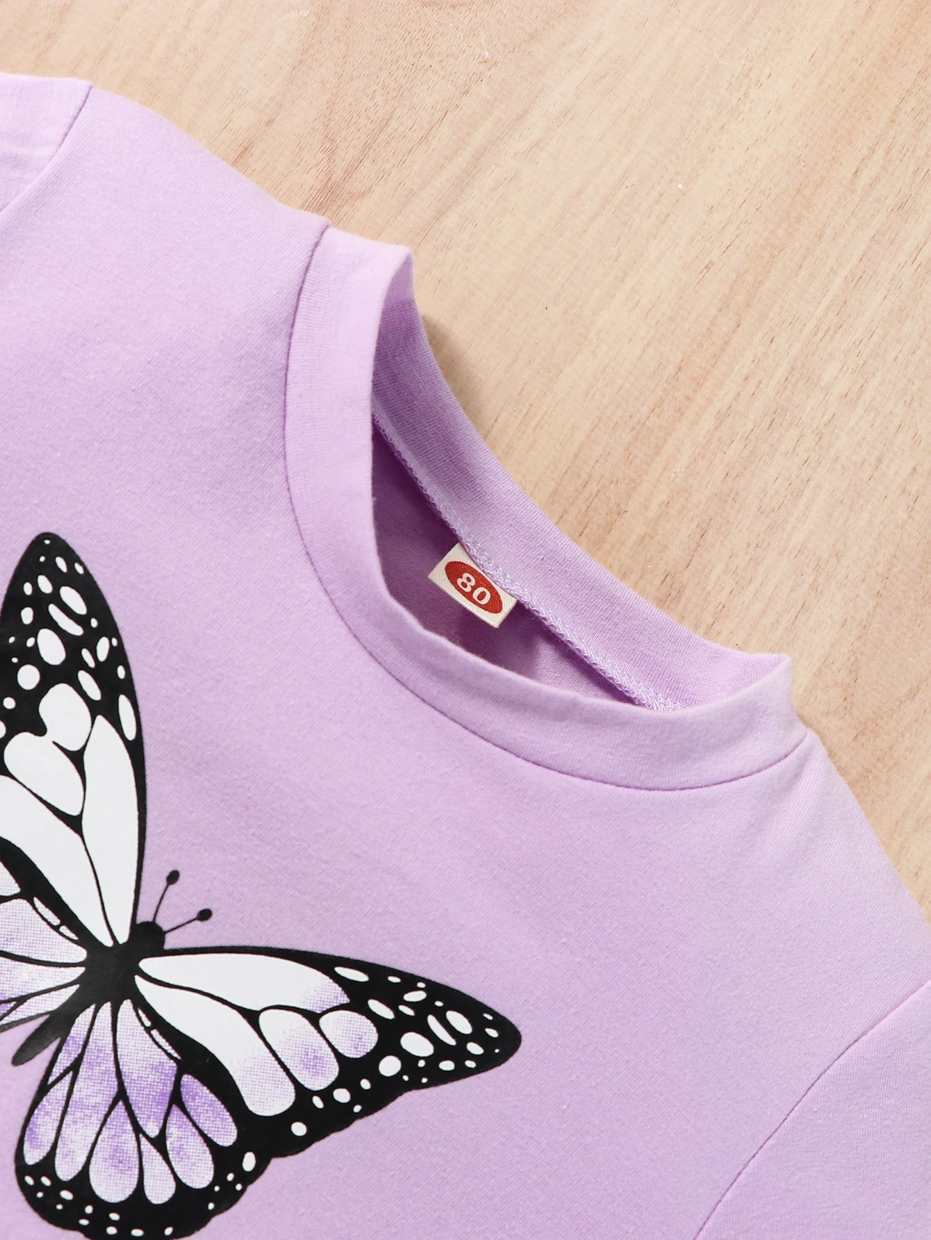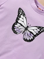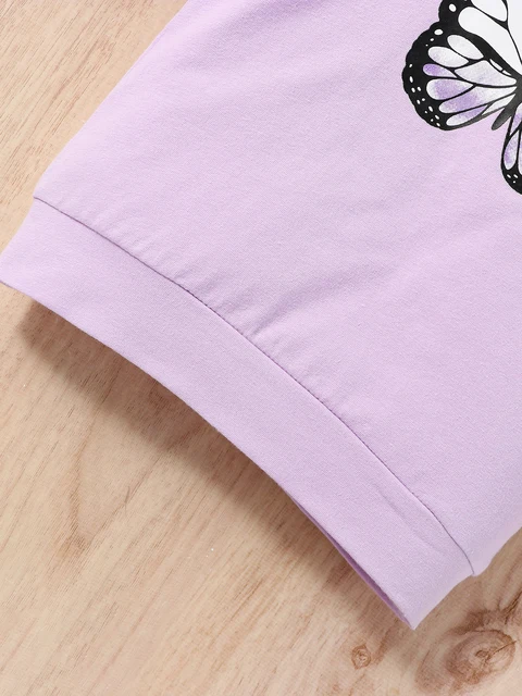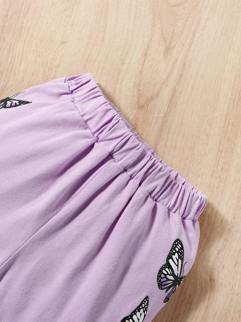 2 pieces set for baby girl, casual butterfly printed round neck long sleeve t-shirt and elastic ankle