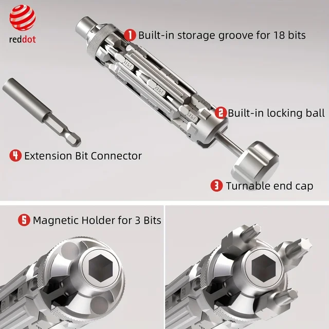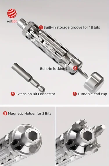 3. Multi Functional Storage: Can Safely Store Up To 18 Screwdriver Heads.